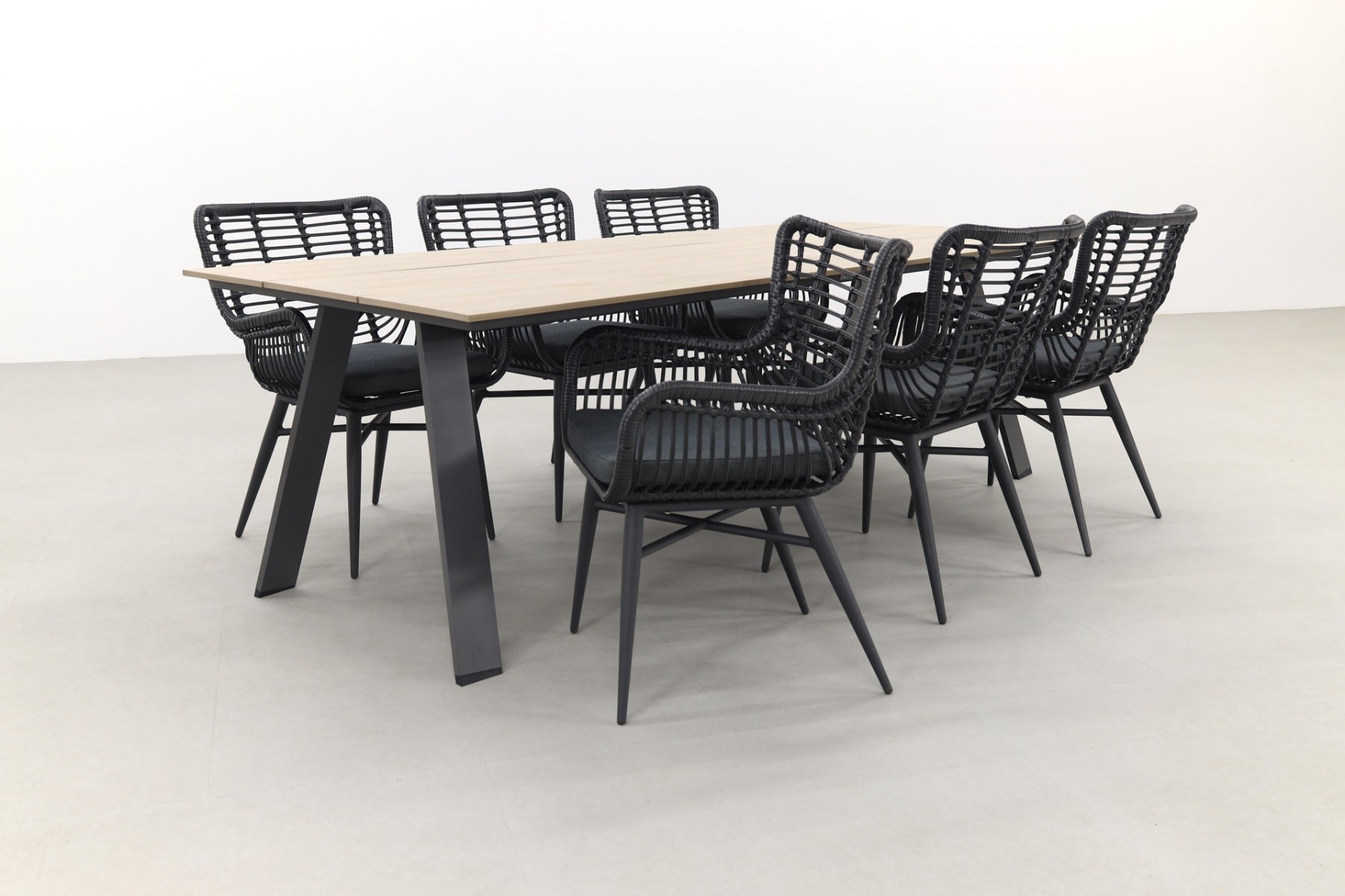 Hou je van een retro uitstraling in de tuin? Dan is deze 6-persoons tuinset met Jasmine wicker stoelen en een royale Nevada tuintafel een uitstekende keuze. De Jasmine diningstoelen bieden heerlijk zitcomfort en nodigen uit tot lange avonden tafelen. De combinatie met de robuuste Nevada tuintafel maakt deze set helemaal af. Perfect voor een diner met vrienden of een gezellige middag met het gezin. Bestel eenvoudig online!