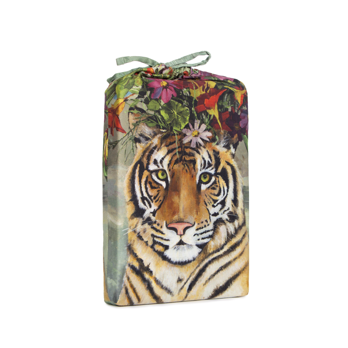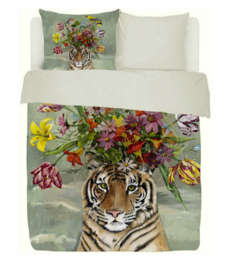 Stap binnen in de exotische wereld van comfort met het 'Tiger' dekbedovertrek van Jet Originals. Gemaakt van luxueus katoen satijn, belooft dit dekbedovertrek een nacht vol rust en schoonheid. De adembenemende print, met een majestueuze tijger op een levendige groene achtergrond versierd met delicate bloemen, voegt een unieke en artistieke flair toe aan je slaapkamer.