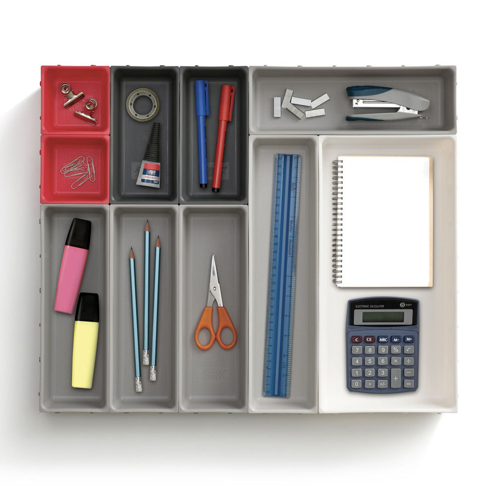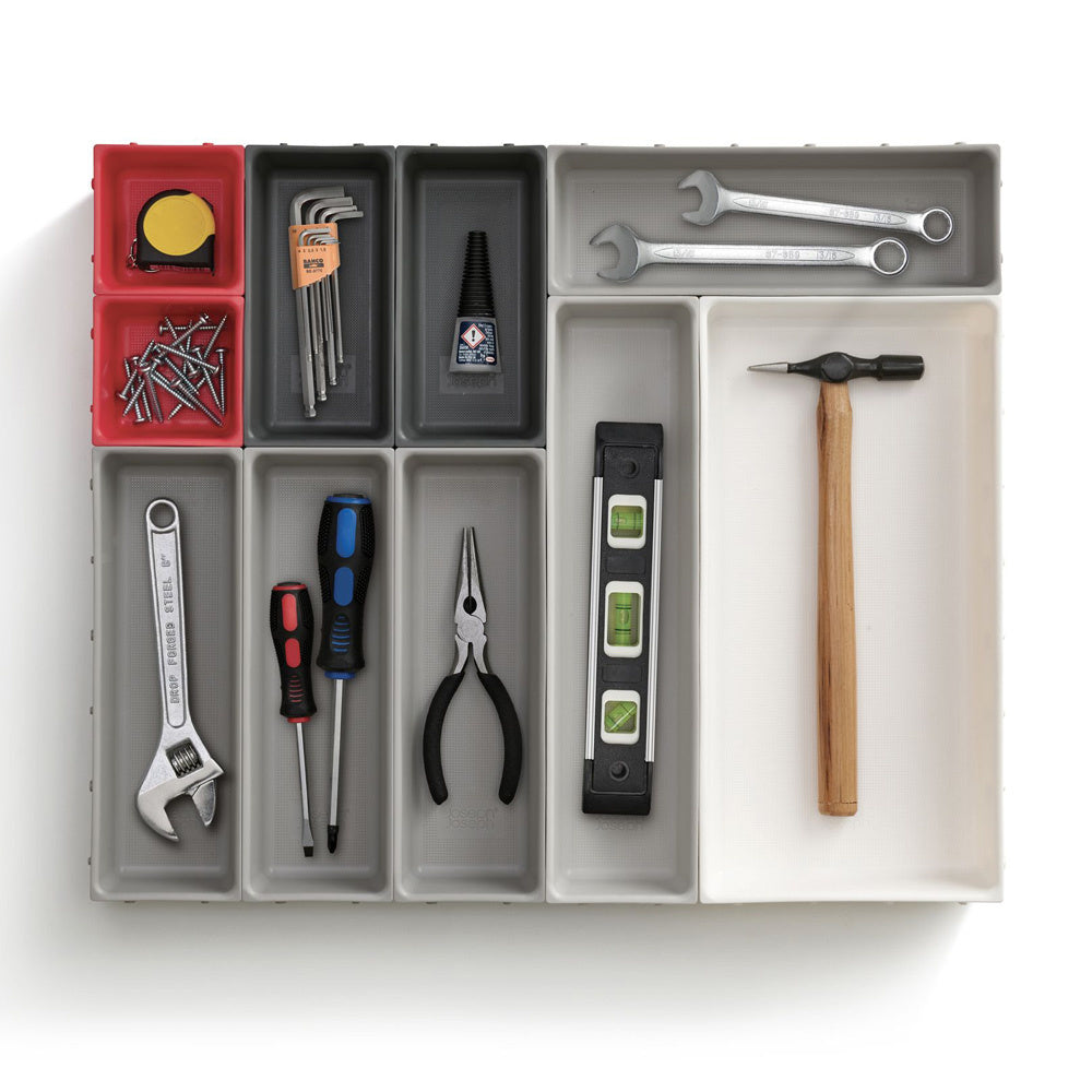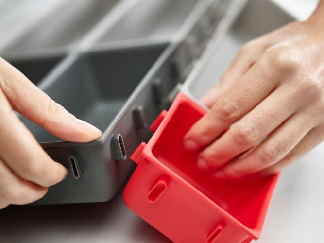 Laden zijn er in allerlei soorten en maten waardoor het organiseren van kleine voorwerpen soms een uitdaging kan zijn. Deze Duo bestekorganiser van Joseph Joseph is hiervoor extra handig dankzij de 10 bakjes met kliksysteem welke in iedere gewenste volgorde in elkaar gezet kan worden. Hierdoor kun je hem precies passend maken in de gewenste lade. Ideaal voor het bewaren van kleine items zoals bestek, gereedschap of knutselmateriaal. Dankzij de antislip voetjes aan de onderzijde, blijft ieder bakje stevig op zijn plek staan.