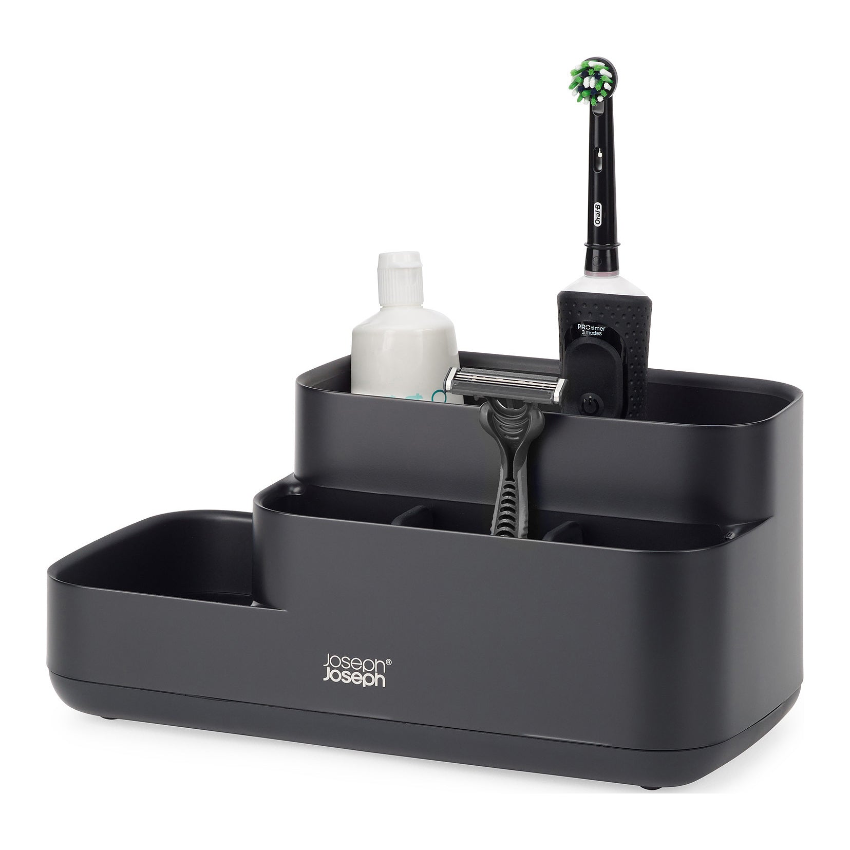 Je wekker gaat, het is nog vroeg en zonder het badkamerlicht aan te doen zoek jij je tandenborstel. En nu maar hopen dat je niet in je scheermes grijpt! In de Joseph Joseph Easy-Store houder heeft alles zijn eigen plekje, dat is lekker geordend.