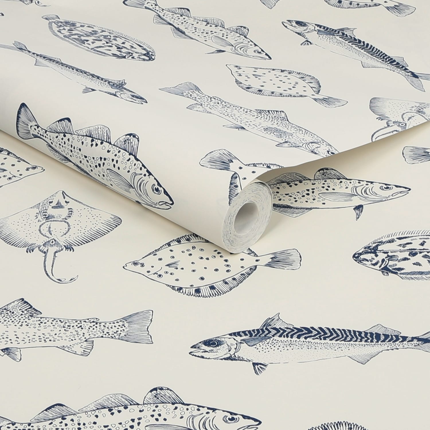 Joules - Vliesbehang - Name The Plaice Coast - Blauw - 10mx52cm