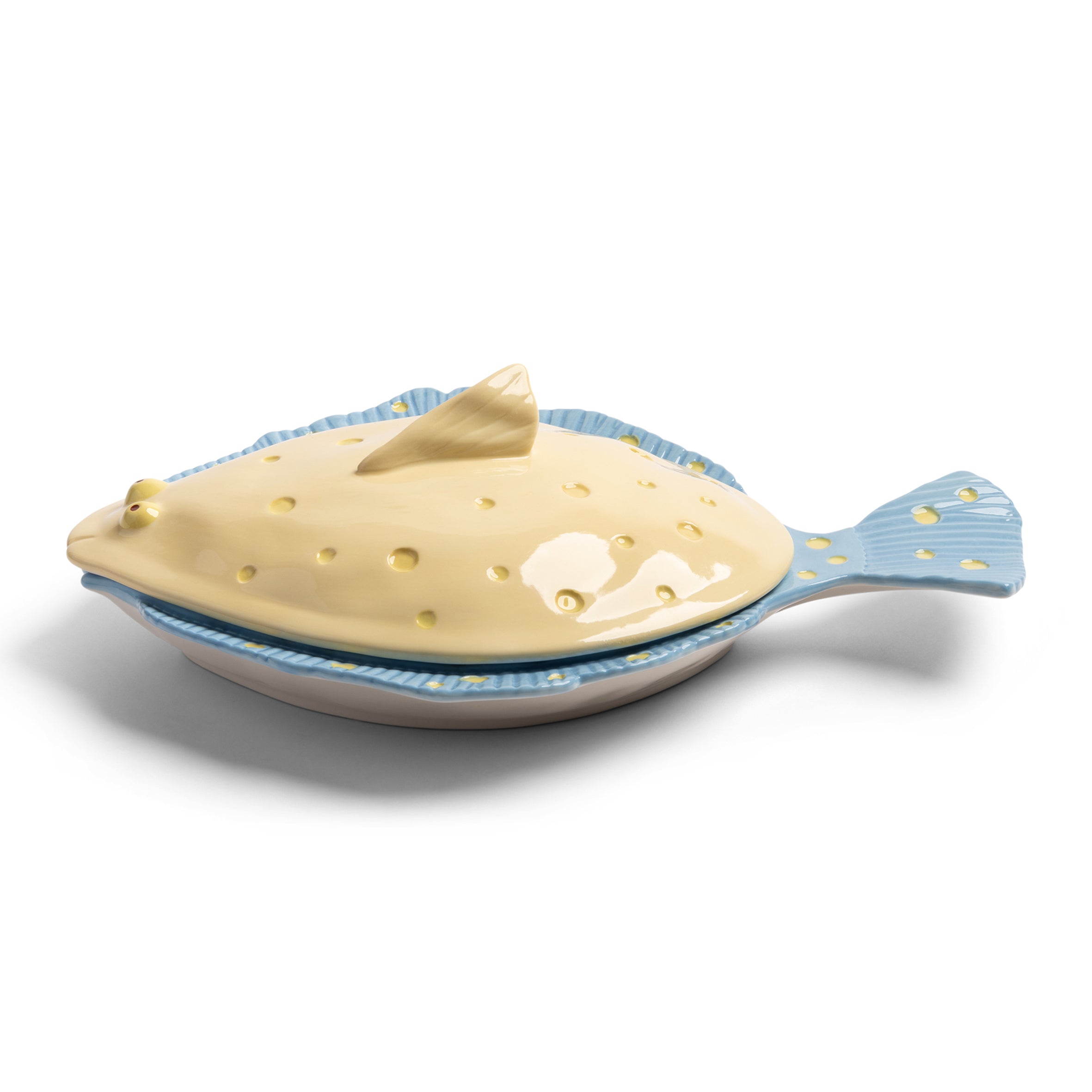 - Visvormige schaal met deksel van H 9 x B 29,5 x D 21 cm
