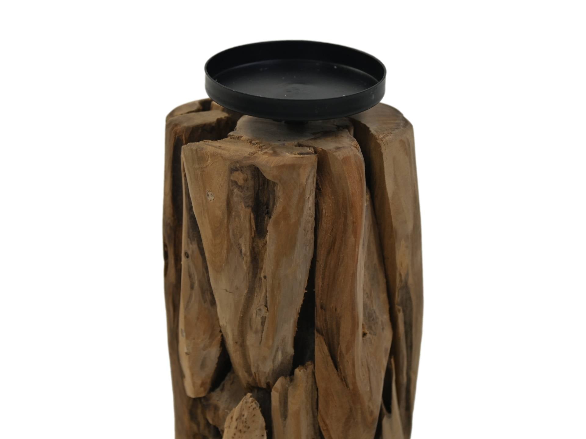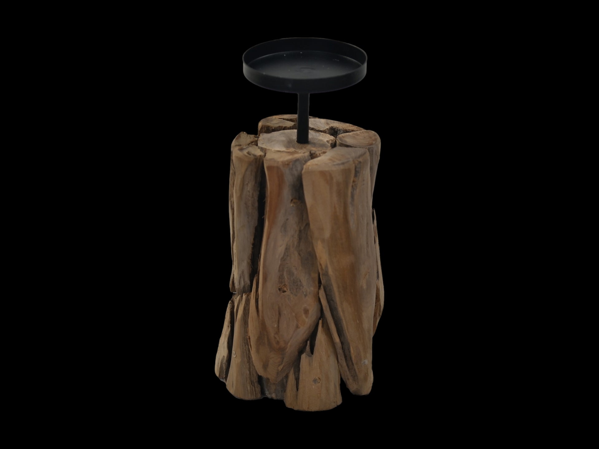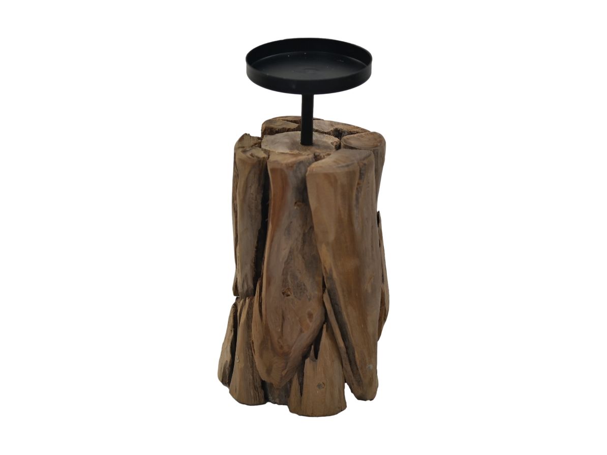Kaarsenhouder op voet - 13x13x21 - Naturel|zwart - Drijfhout|metaal