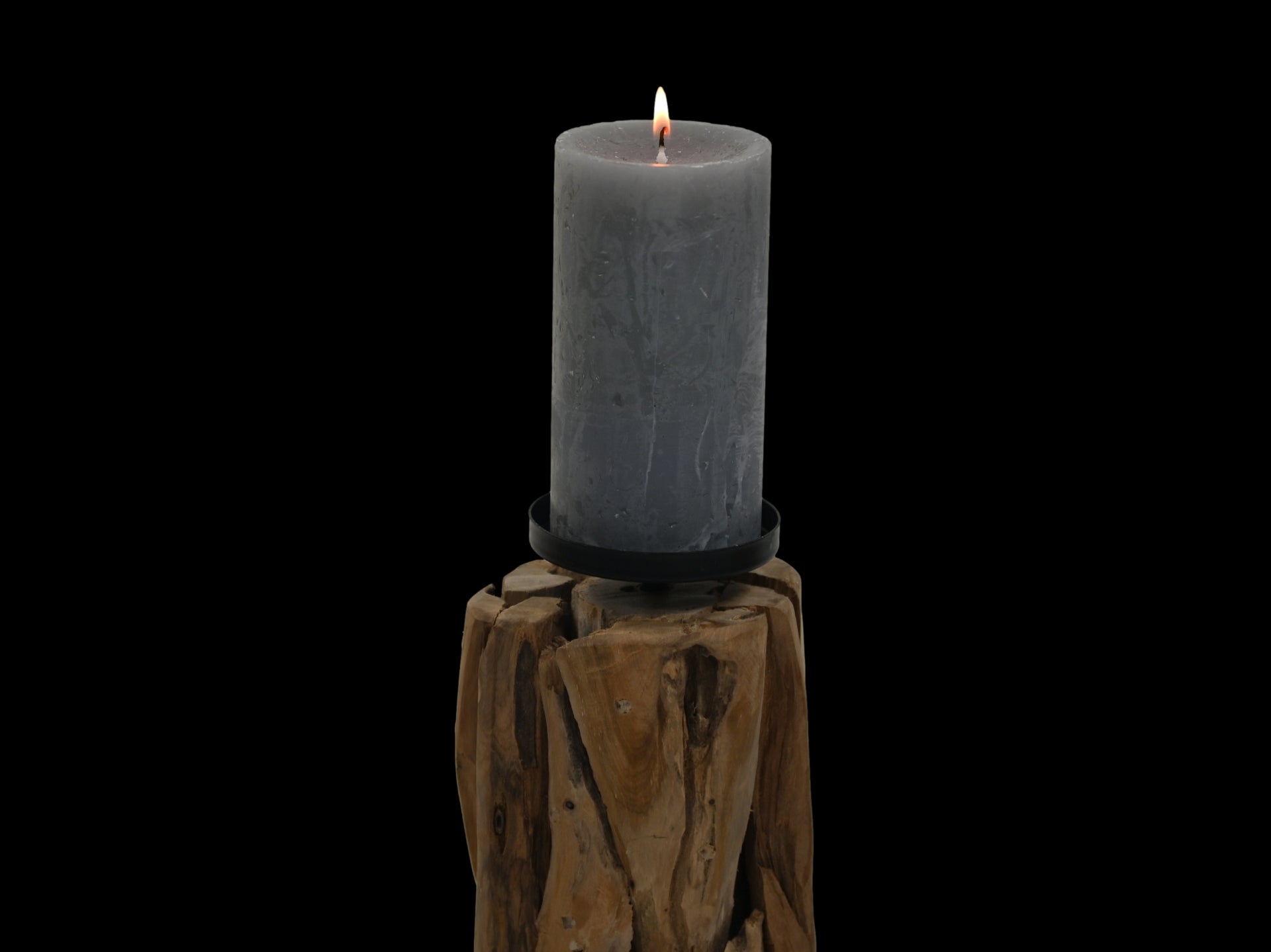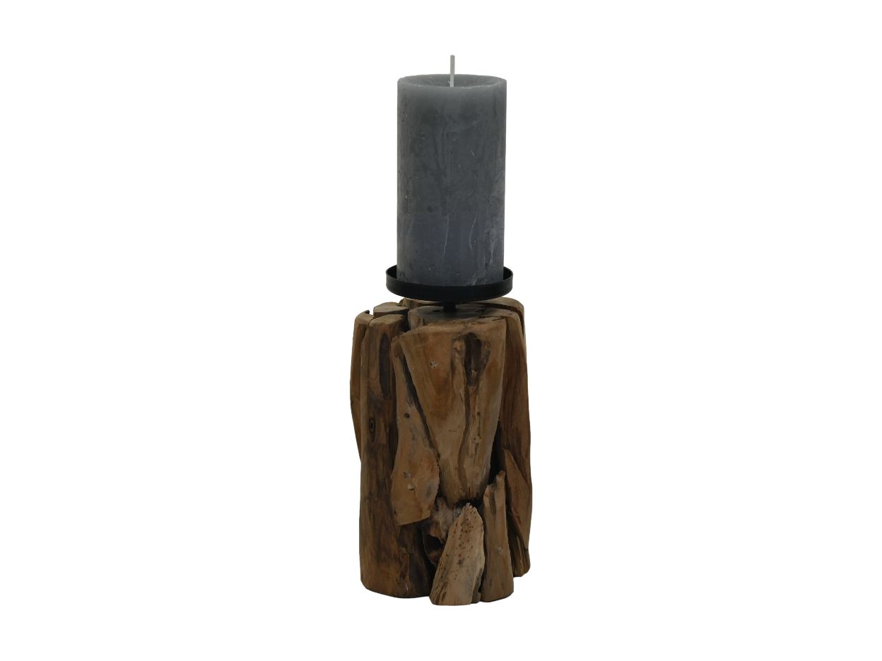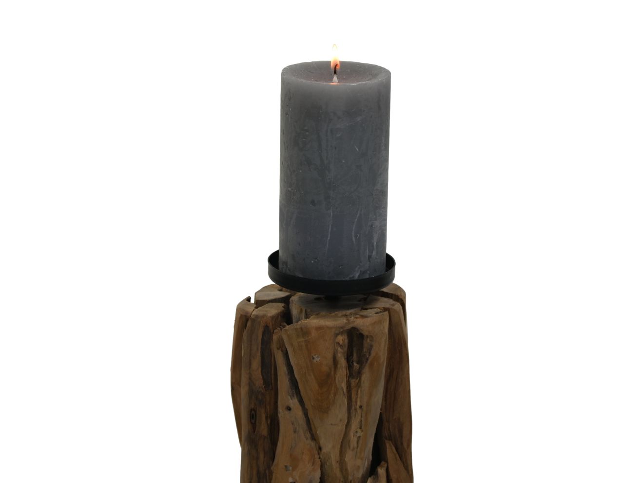 Kaarsenhouder op voet - 13x13x21 - Naturel|zwart - Drijfhout|metaal