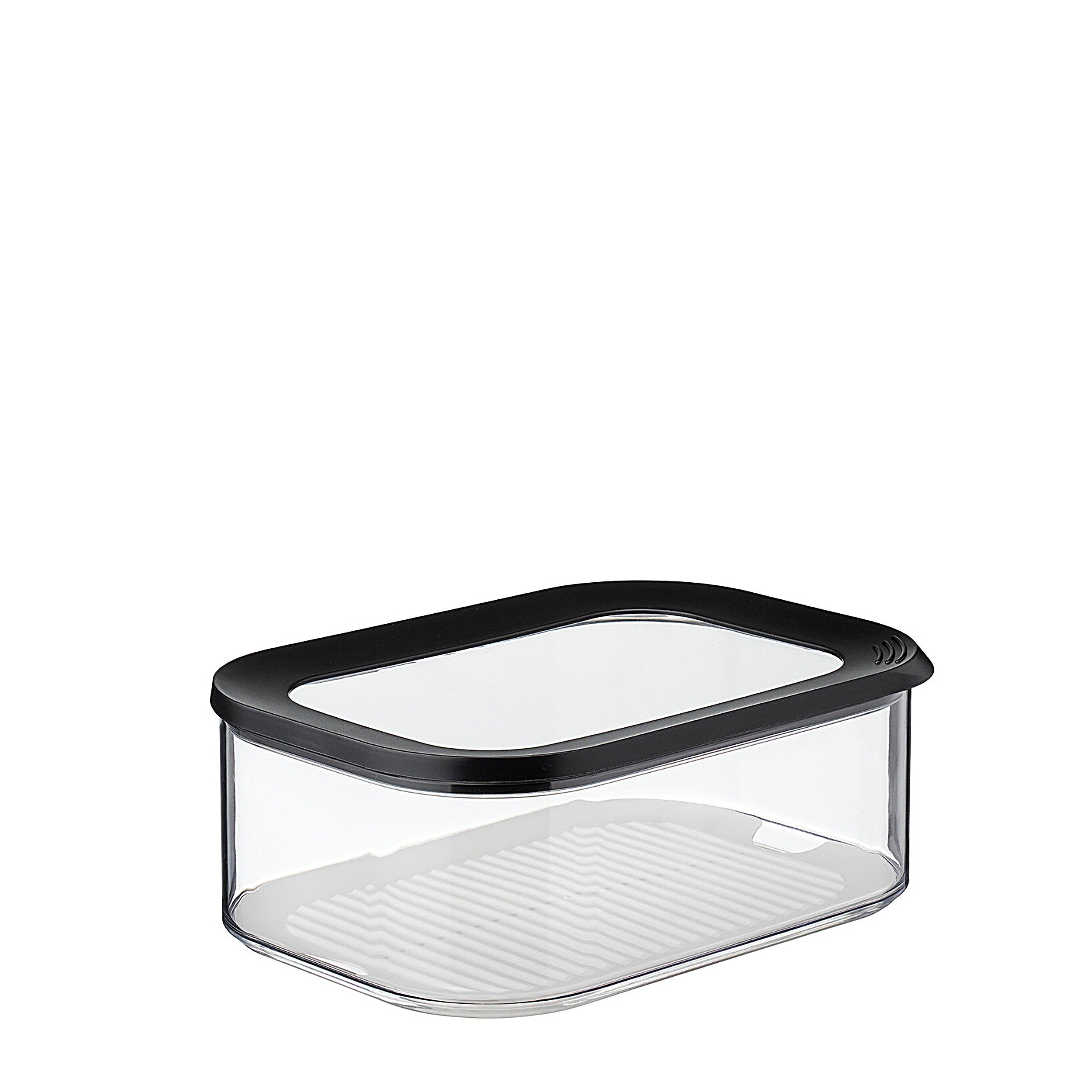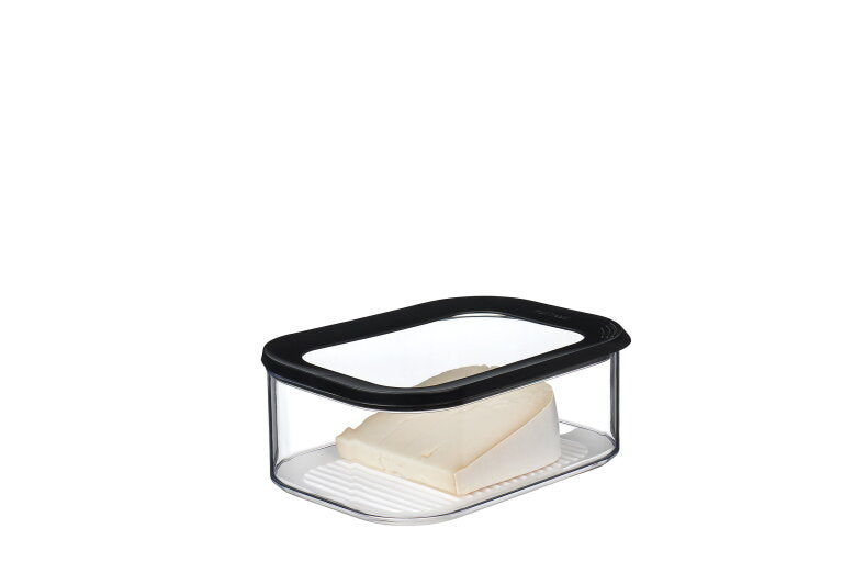 Kaasdoos Modula, voorzien van een doorzichtige deksel met zwarte ring. De rechthoekige Modula kaasdoos met afgeronde hoeken heeft een inhoud van 2000 ml, is standaard voorzien van een anticondens tray en geeft direct zicht op inhoud, ook in de koelkast! De zwarte afdichtring zorgt voor een perfecte afsluiting, waardoor deze doos geschikt is voor het bewaren van diverse kaassoorten. De Modula bewaar- en opbergdozen van Mepal zijn verkrijgbaar in verschillende maten en uitvoeringen, liggen goed in de hand en zijn makkelijk te openen. Bovendien zijn ze stapelbaar en vaatwasmachinebestendig. Hoe veeleisend u ook bent: Modula bewaardozen zijn erop berekend!