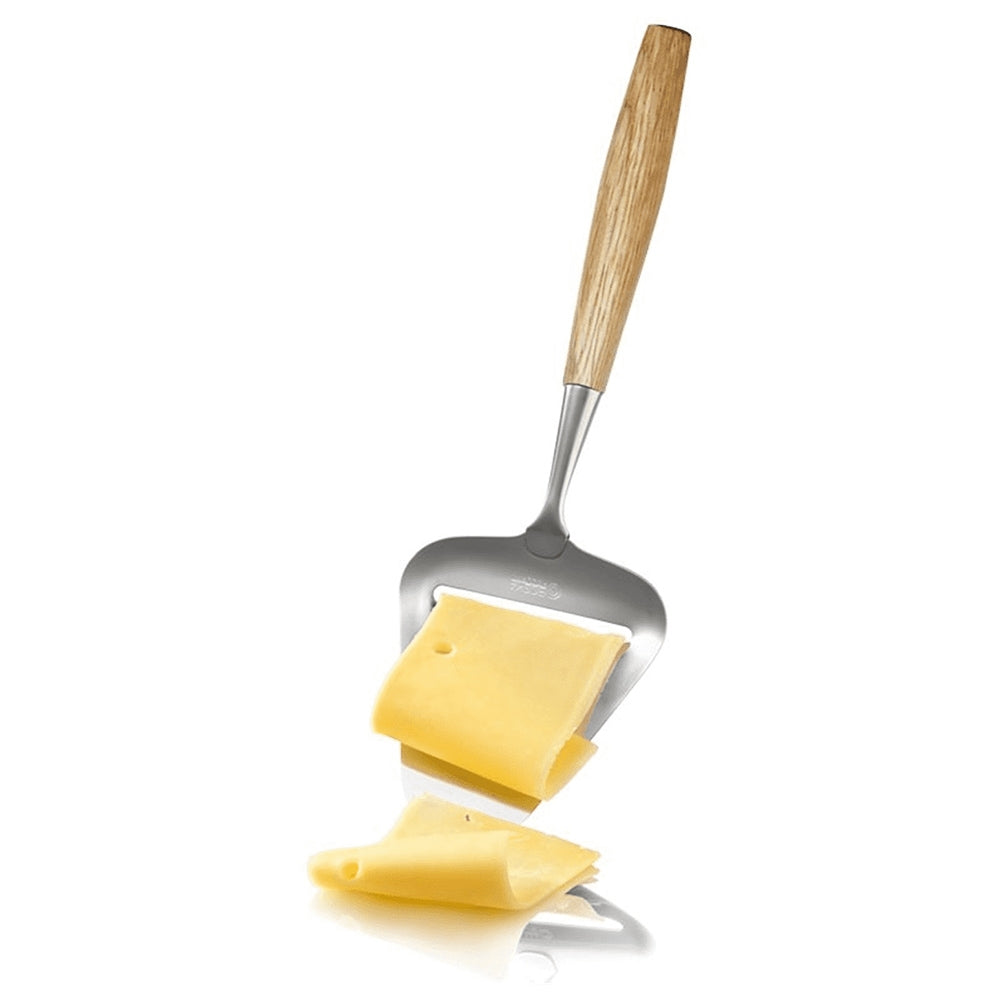 Een kaasschaaf met een natuurlijke look en comfortabele grip. Een kaasschaaf ideaal voor het schaven van half harde en harde kazen. Het schaafblad is van roestvrijstaal, waardoor hij extra stevig is en lang scherp blijft.