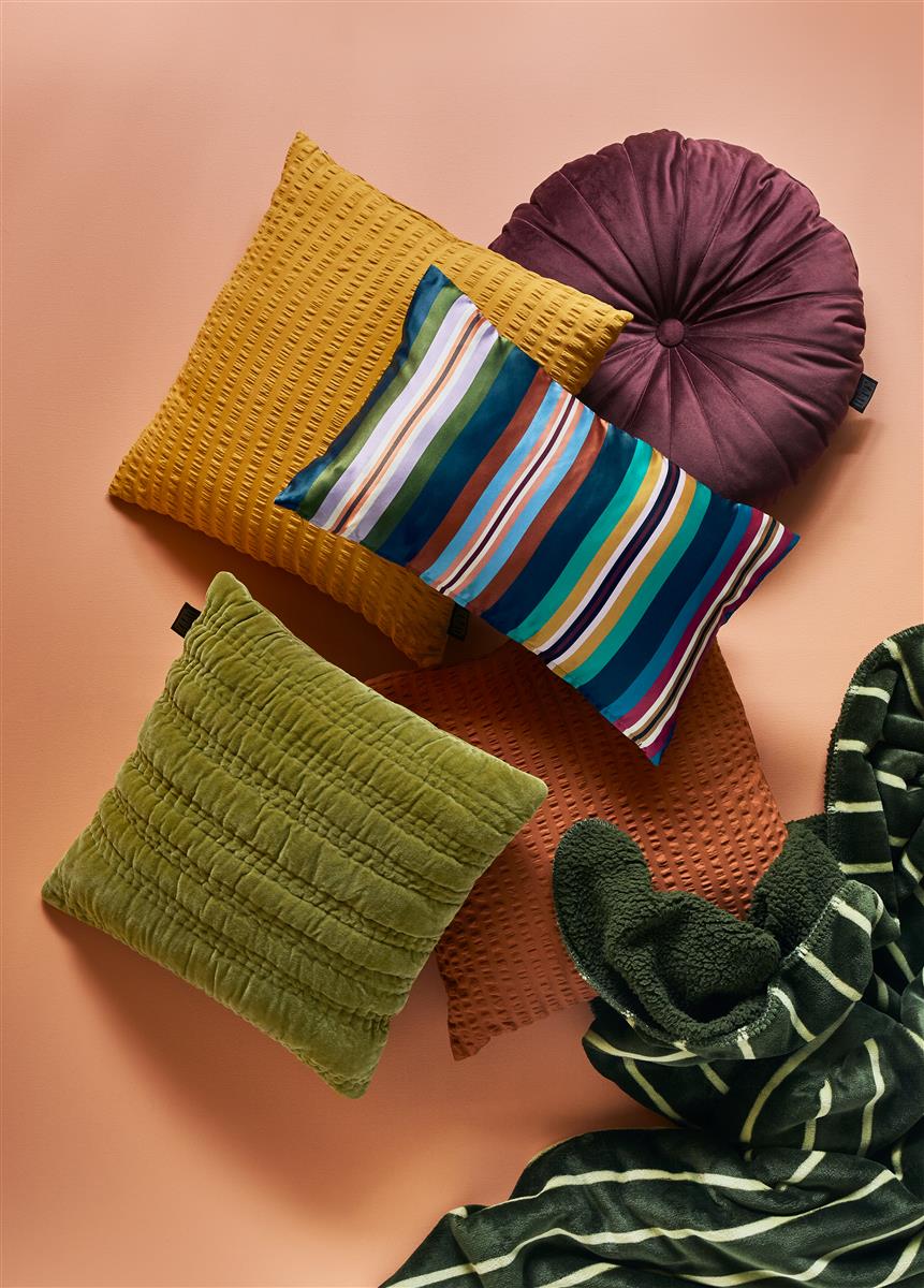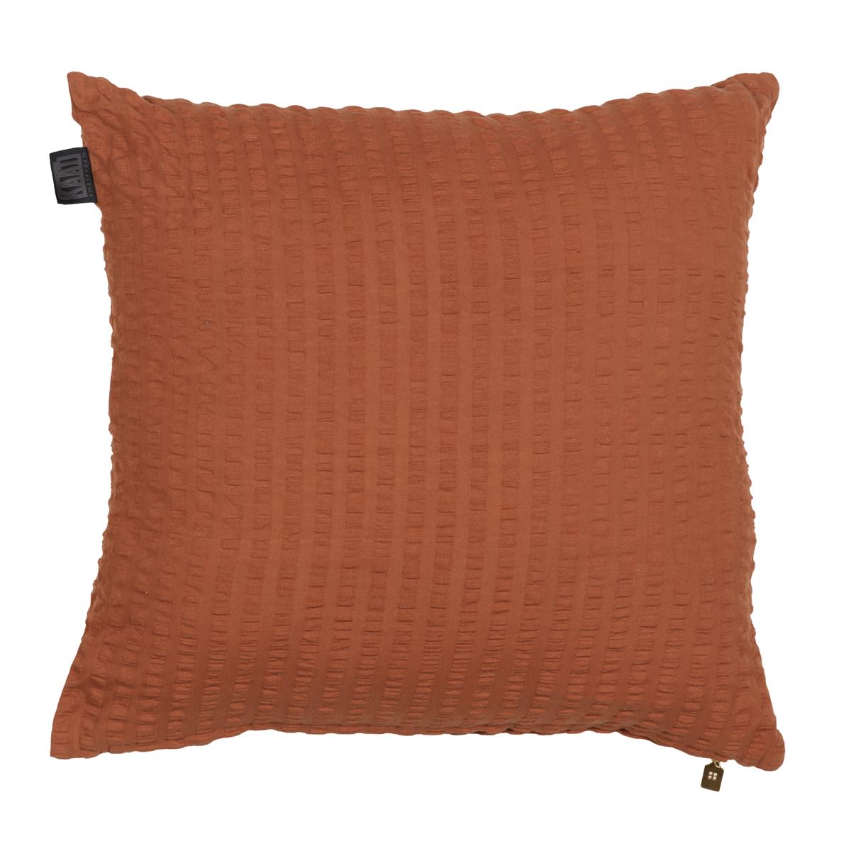 Sierkussen Cheer van KAAT Amsterdam is een perfecte combinatie van textuur en kleur. Het kussen bestaat uit strepen van de zomerse kwaliteit seersucker, wat zorgt voor een mooi reliëf. Het kussen heeft aan beide zijdes een uni terra kleur. Verkrijgbaar in meerdere kleurstellingen.