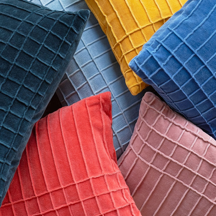 KAAT Amsterdam Sierkussen Aura is een prachtig Velvet sierkussen met op de voorkant een modern grid. Dit kussentje is verkrijgbaar in verschillende vrolijke kleuren, leuk om met elkaar te combineren! Dit kussen is gemaakt van 100% katoen en wordt geleverd inclusief een stevig binnenkussen van polyester. Stylen met sierkussens