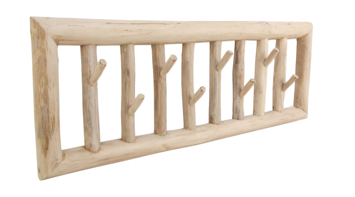 Kapstok 8 haken - 80x12x30 - Naturel - Teak
