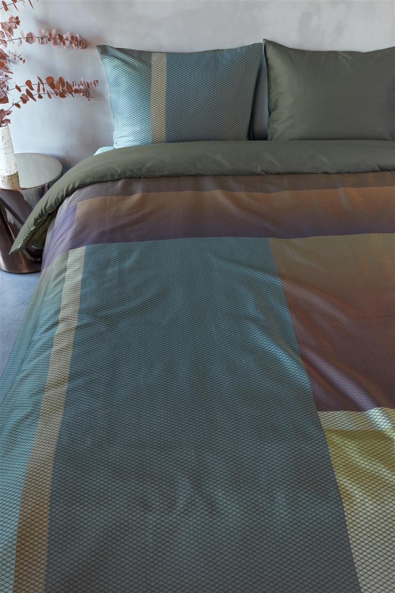 Dat de mode een grote inspiratiebron is voor Kardol by Beddinghouse bewijst het dekbedovertrek Sloan Square. De kleuren lijken rechtstreeks van de catwalk van Hermès af te komen. Samen met de kleuren zorgt de spannende combinatie van vlakken en de subtiele print voor een gevoel van rijkdom in de slaapkamer. Door het gebruik van 100% katoensatijn voelt het overtrek zacht aan en heeft het een schitterende glans. De achterzijde van het overtrek en de kussenslopen hebben een effen grijs groene kleur.