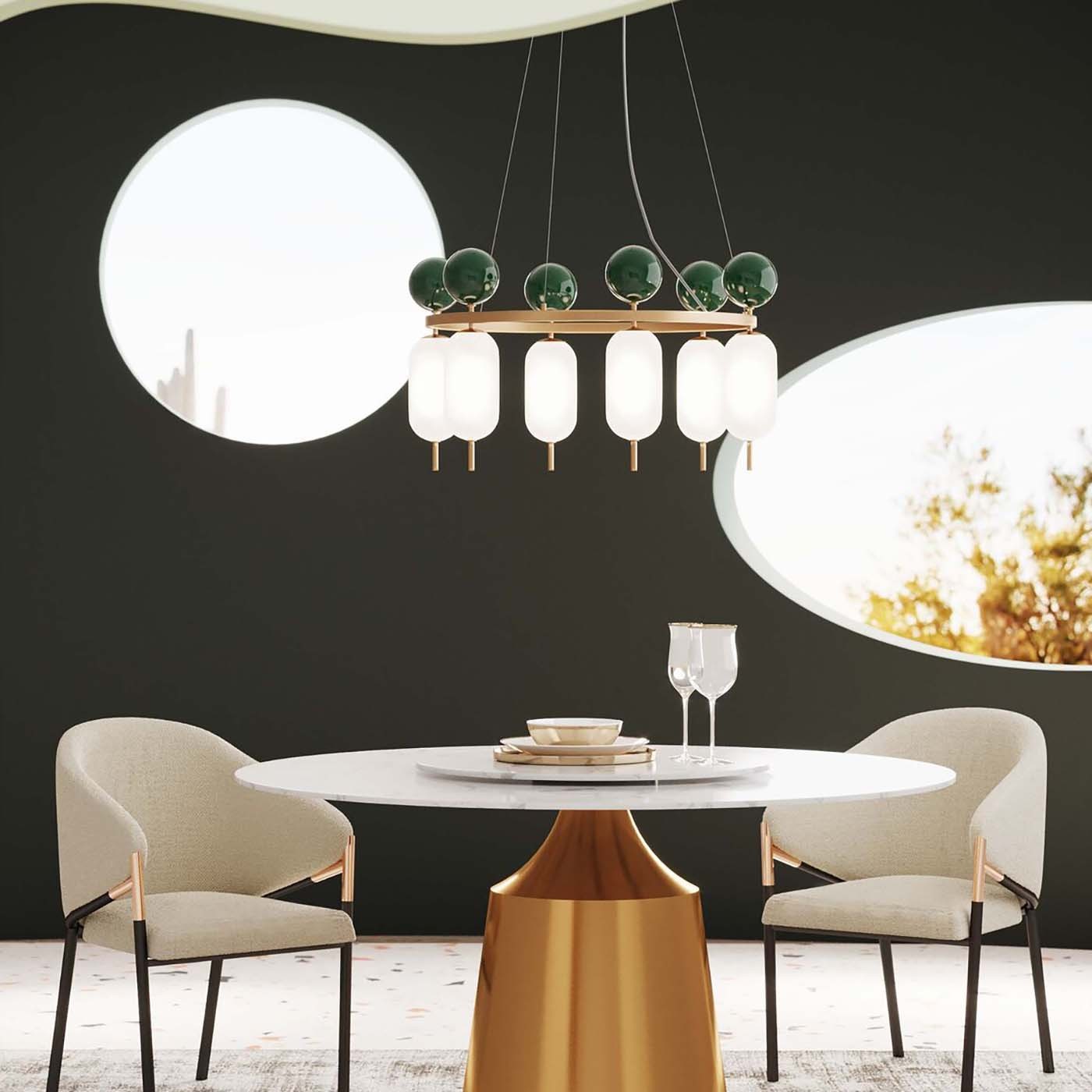 - De "Charleston Six" hanglamp van Kare heeft een hoogte van 120 cm en een diameter van 68 cm.
