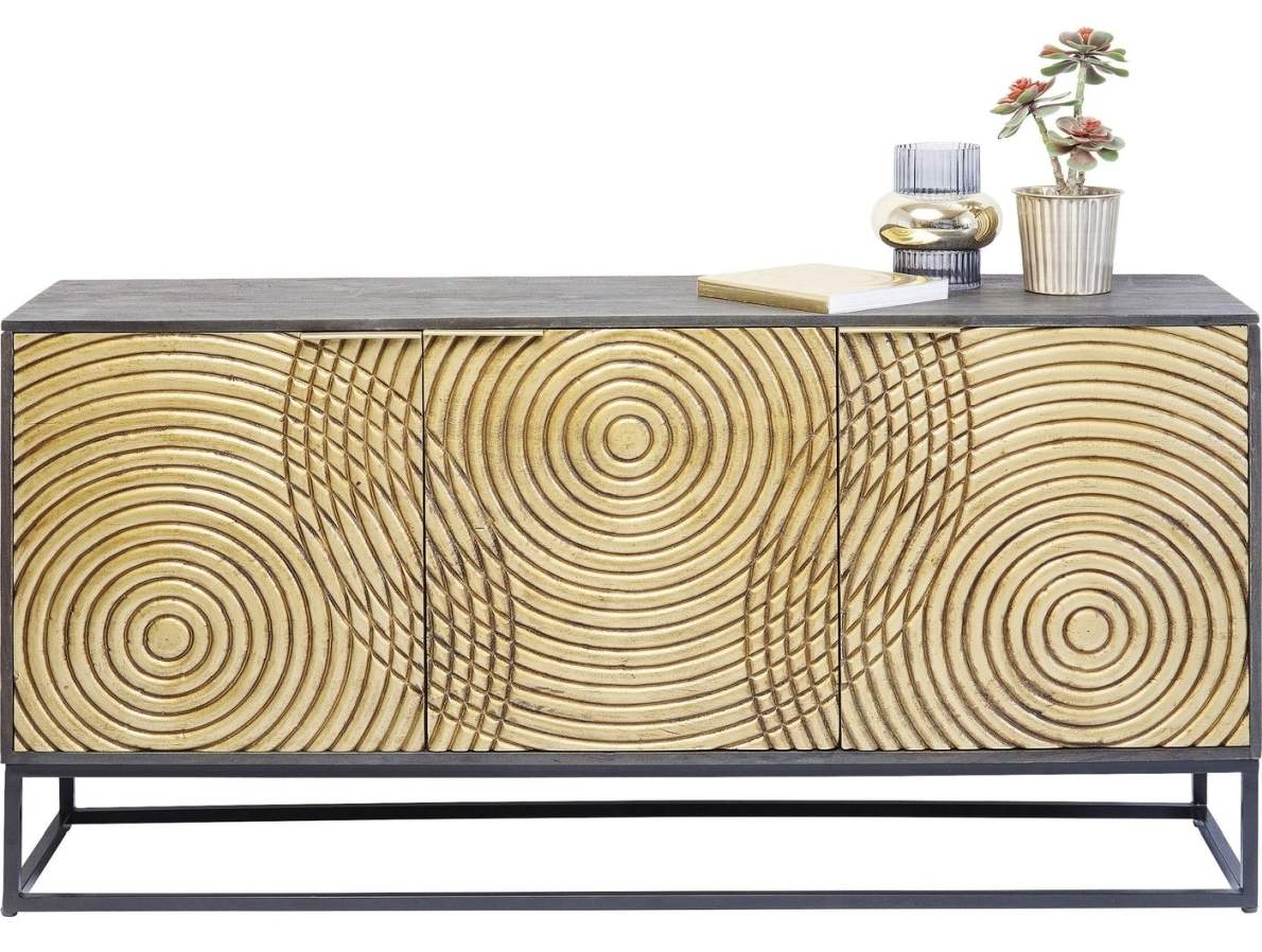 De vorm van dit massief houten dressoir Circulo van Kare Design is strikt grafisch en ingetogen maar het patroon op de goudkleurige deuren is magisch! Met fijne lijntjes zijn talloze cirkels in het hout met de hand uitgehouwen Achter de 3 kunstig versierde deuren met "push to open" van Circulo zit veel opbergruimte, wat misschien niet magisch is, maar wel indrukwekkend! Circulo is ook verkrijgbaar als opbergkast