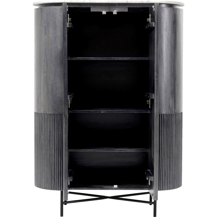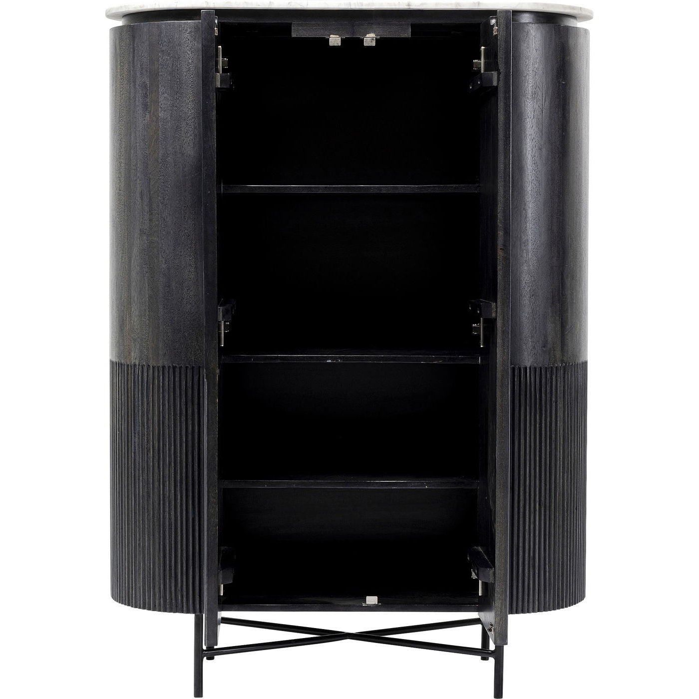 Het Glenn kabinet straalt tijdloze elegantie uit en maakt indruk met zijn kostbare materialen en opbergmogelijkheden De drie vaste planken in het zwarte interieur bieden voldoende opbergruimte Het kastje heeft 2 deuren met verzonken grepen Deze hoge kast past perfect tegen een smalle wand Gebruik de kast bijvoorbeeld als thuisbar, linnenkast, schoenenkast of als halmeubel Deze tijdloze kast is gemakkelijk te combineren en voelt zich thuis in een modern of klassiek interieur