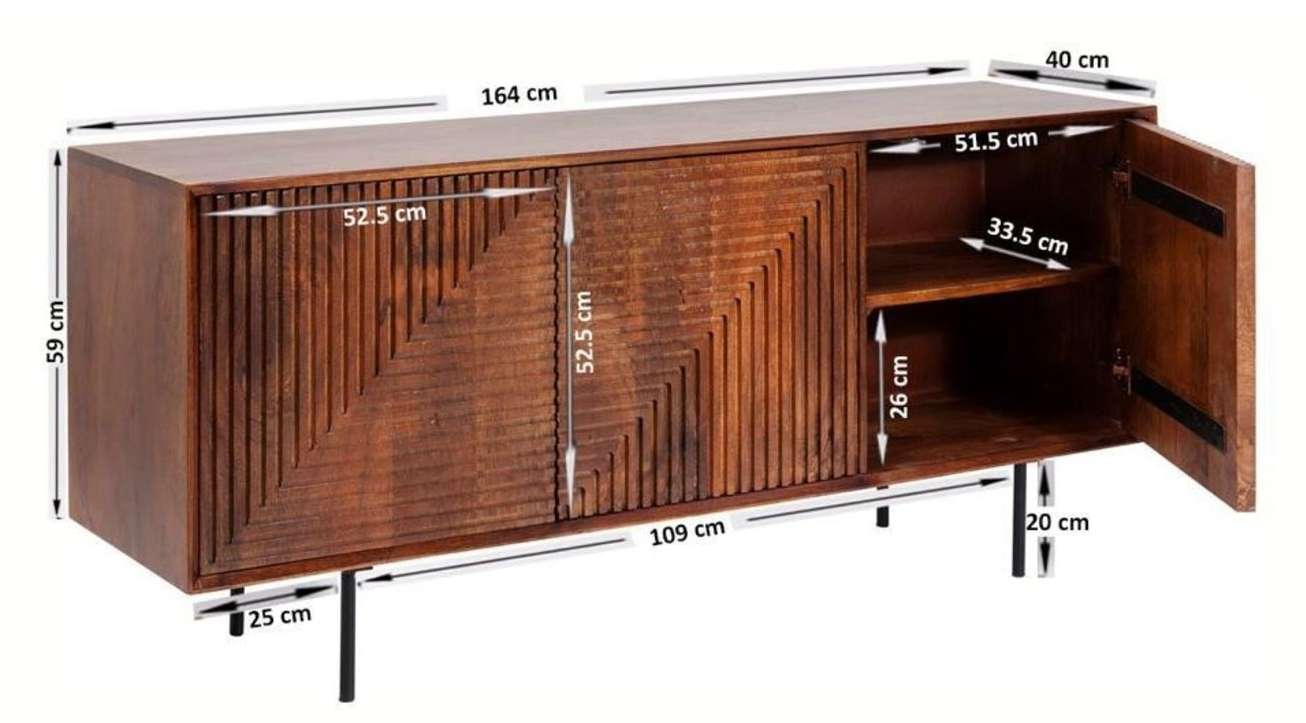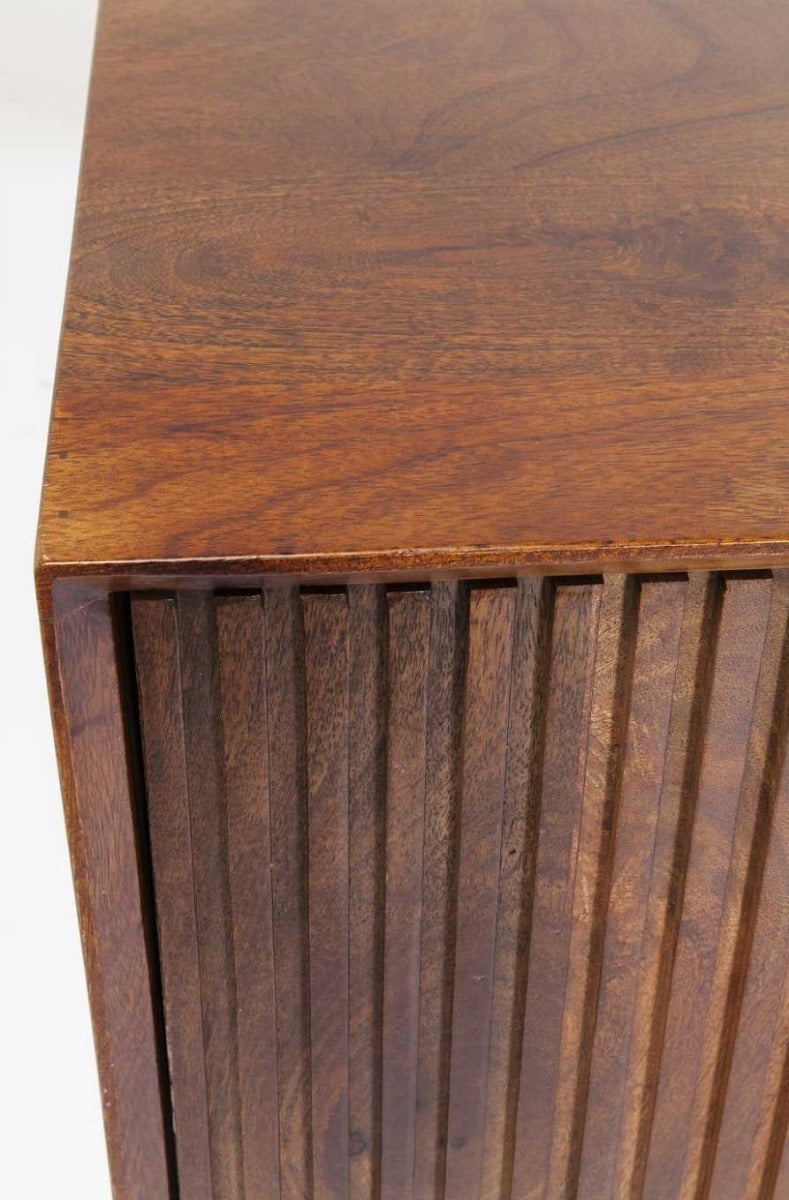 - Ambachtelijk timmerwerk: handgemaakt dressoir van massief mangohout met grafische reliëfdecoratie op de fronten