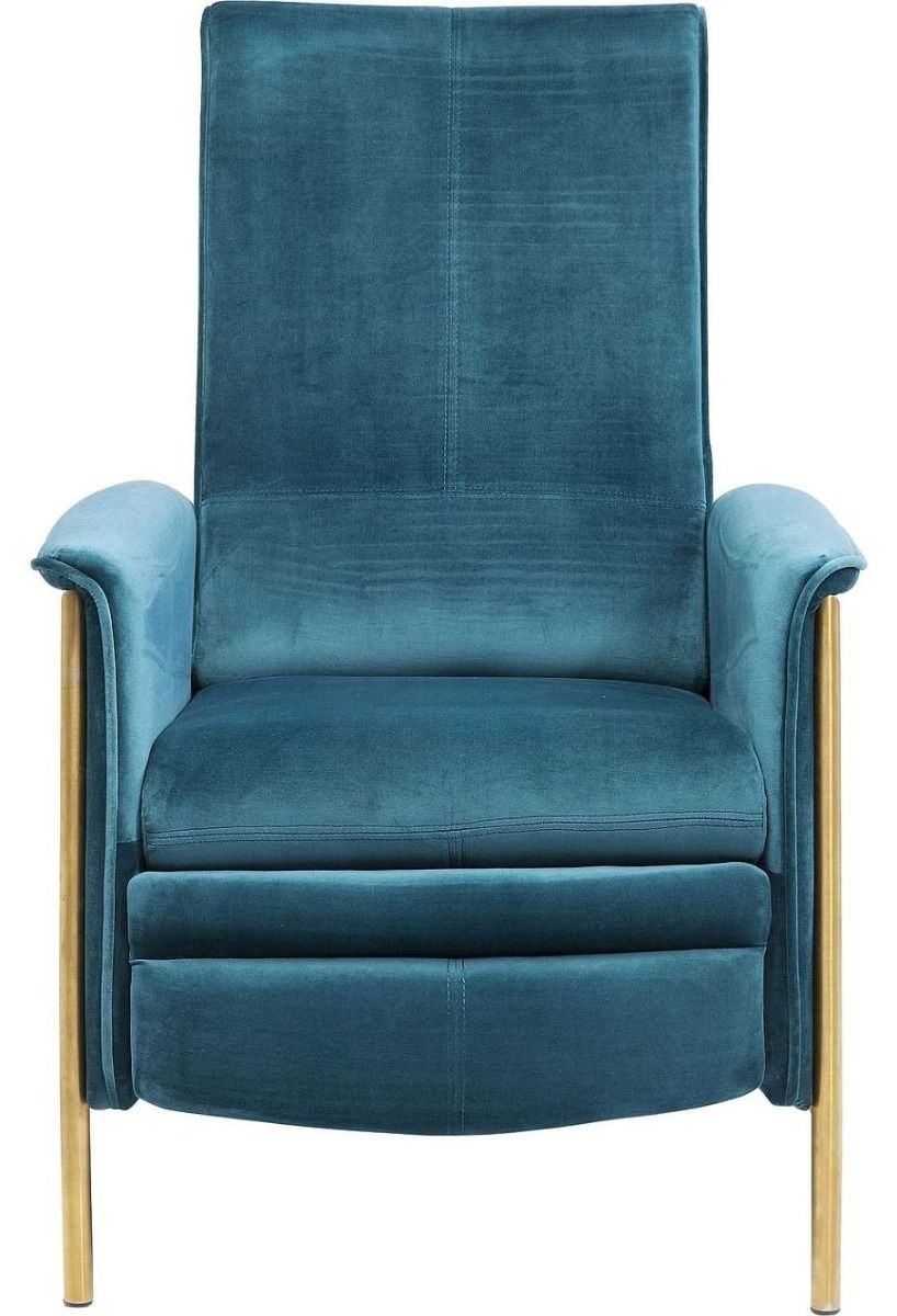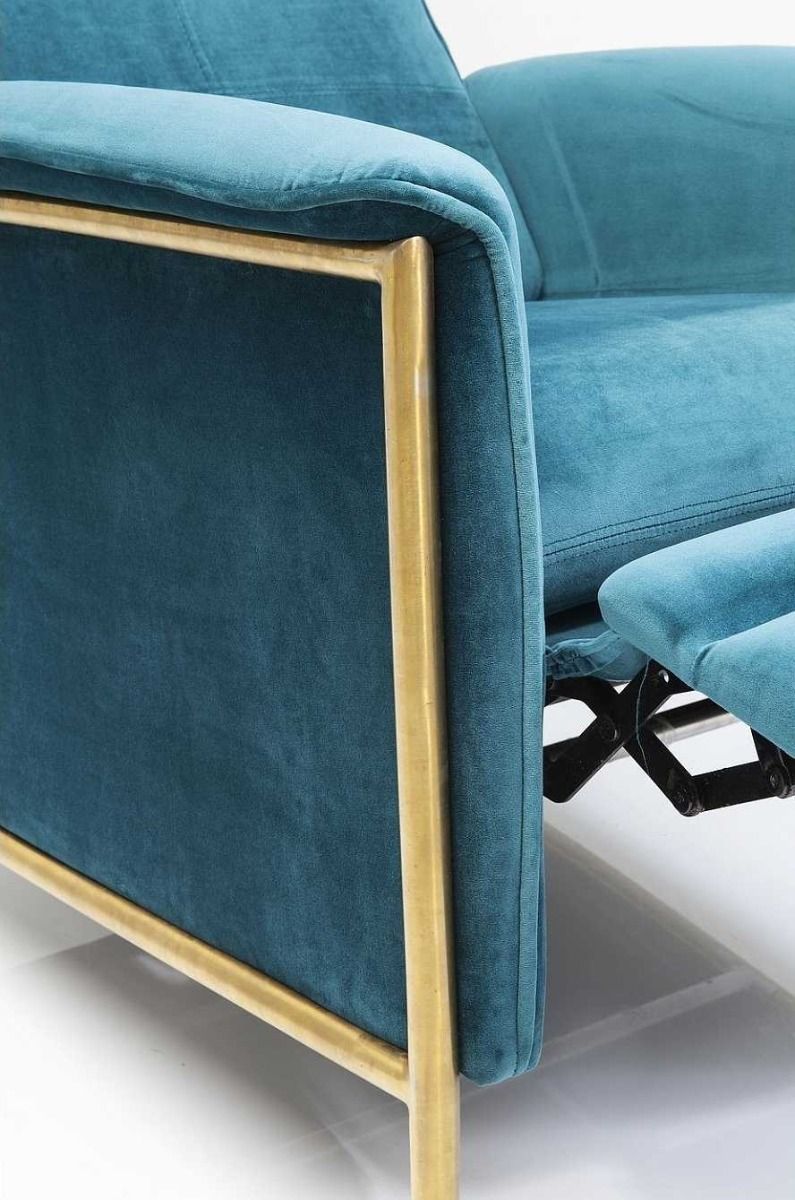 Kare Design Lazy Velvet Relaxfauteuil - Blauw Fluweel - Messing Frame