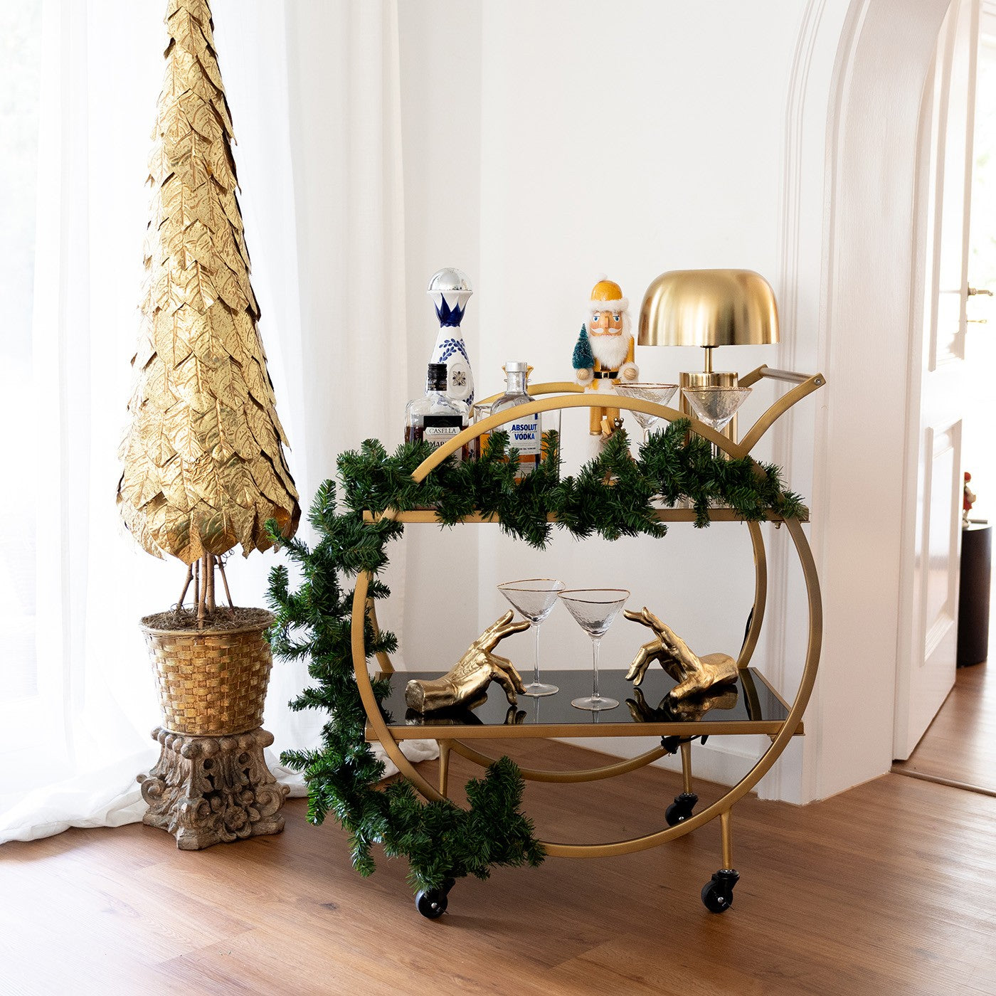 - Dankzij de gouden lampenkap zorgt de tafellamp voor warm en sfeervol licht