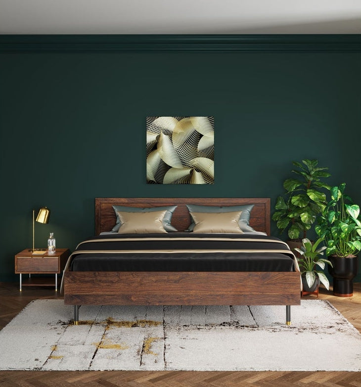 - Materiaal: gelakt sheeshamhout, MDF en gepoedercoat metaal