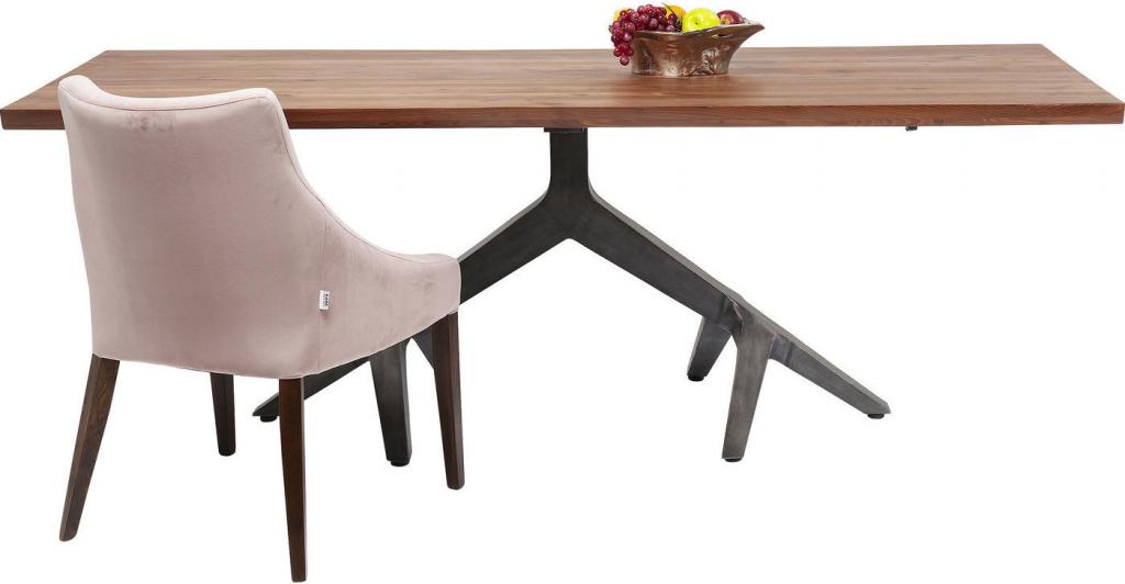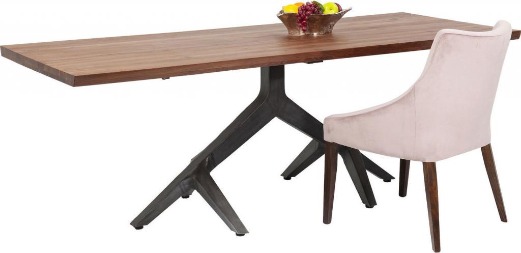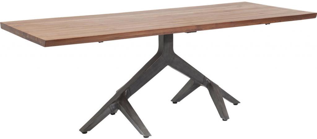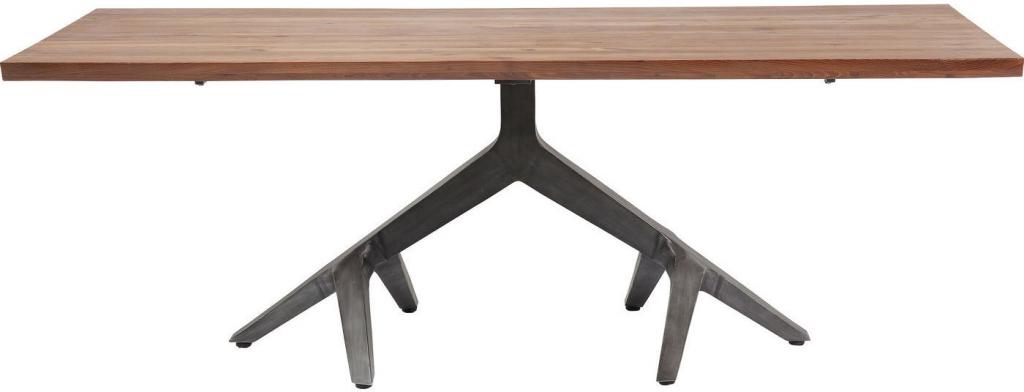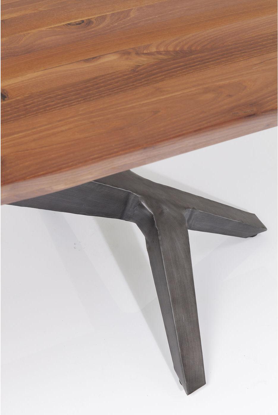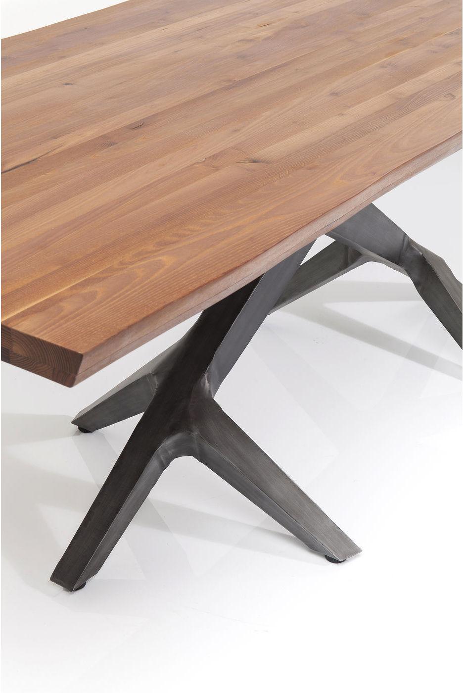 - Een industriële eettafel met een rechthoekig acaciahouten blad en stalen poten voor een eigentijdse uitstraling.