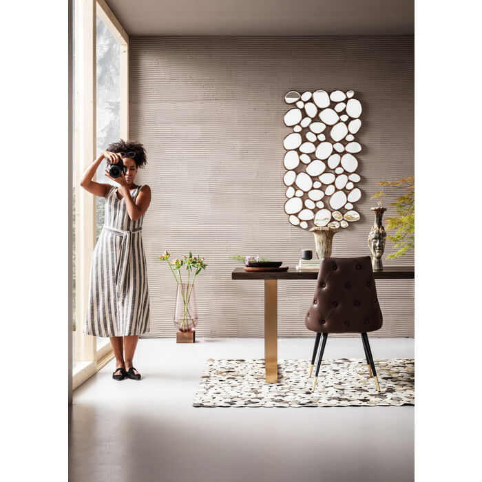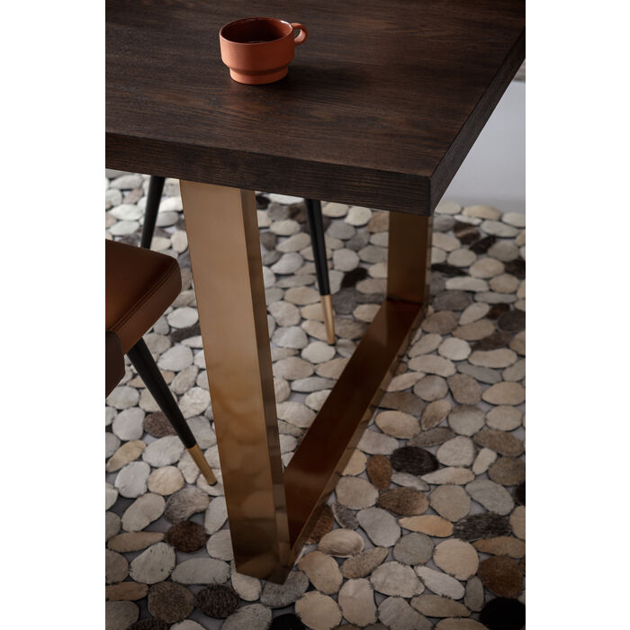 Het tafelblad van de Osaka tafel is gemaakt van MDF met een laagje essenfineer, wat het tafeloppervlak een luxe en licht glanzende uitstraling geeft Deze luxueuze tafel biedt plaats aan 6 personen, maar is ook erg geschikt als werktafel Het messingkleurige onderstel voegt een vleugje Japanse esthetiek toe en creëert een moderne Aziatische stijl in huis Ook zonder tafelkleed is de Osaka tafel een feestelijke tafel, style de tafel af met messingkleurig bestek of grijs porselein