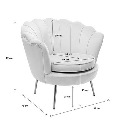 - De Fauteuil Water Lily Roze heeft een comfortabele grootte (79x96.5x78 cm) met een zithoogte van 45 cm en een solide gewicht van 17 kg.