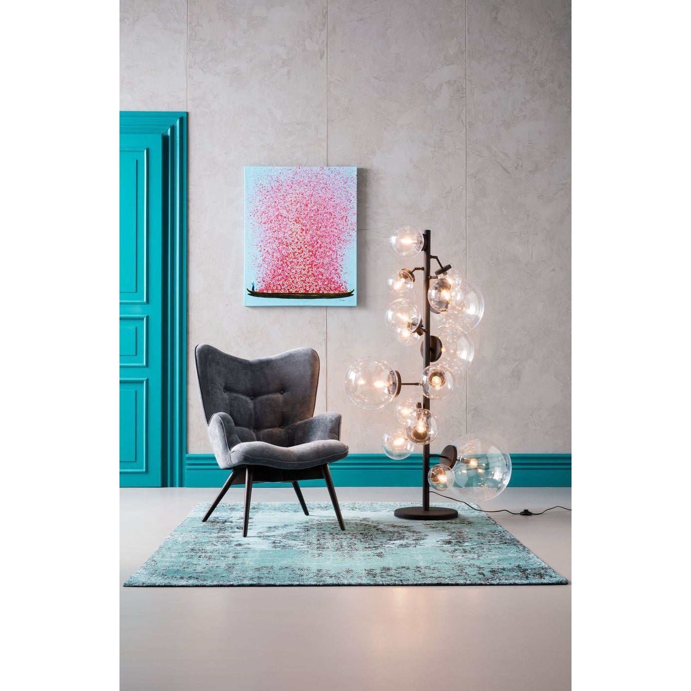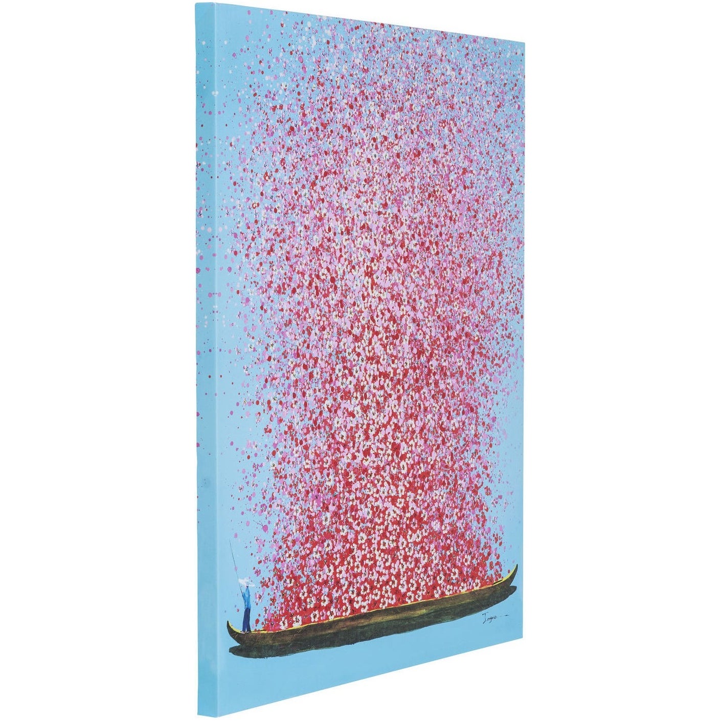 - Meerkleurig palet: Levendige tinten van blauw en roze creëren een harmonieuze en opvallende compositie.