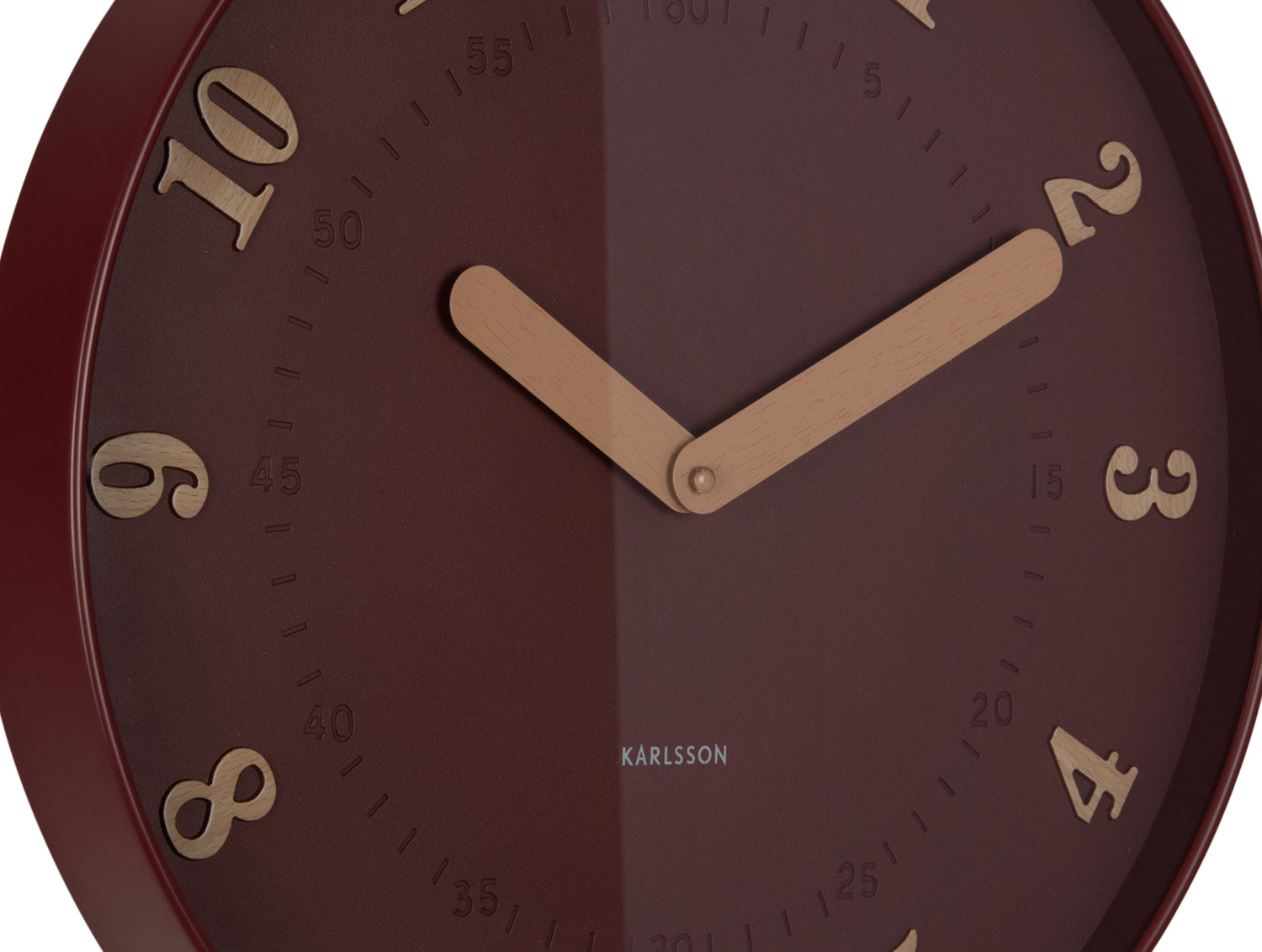 De Amena wandklok van Karlsson speelt met contrast. De wijzerplaat is strak en modern, terwijl de cijfers een warme, natuurlijke uitstraling hebben dankzij de houtkleurige afwerking. De robuuste cijfers en brede wijzers zorgen voor een duidelijke tijdsaanduiding, zonder in te leveren op stijl. De Amena past perfect binnen het Natural Glow thema en voegt karakter toe aan iedere ruimte. Een moderne klassieker met een subtiele knipoog naar natuurlijke materialen.