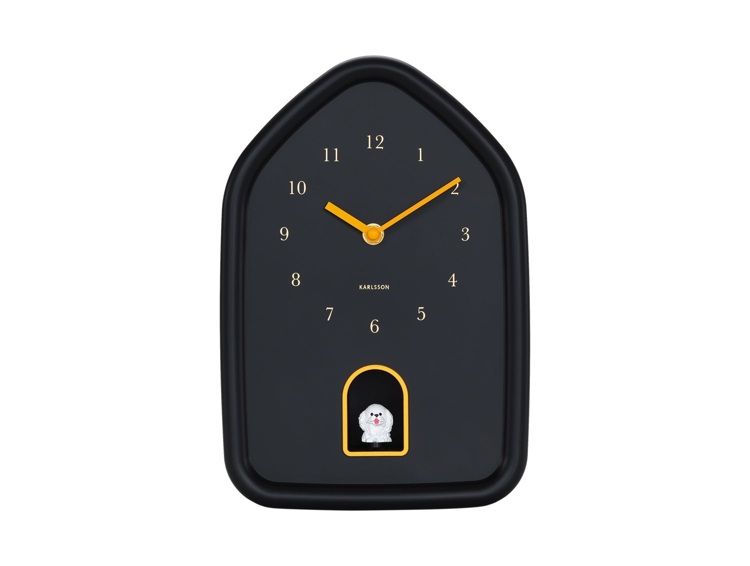 Een modern vormgegeven klok met een verrassend detail: elk heel uur laat een klein brutaal hondje zich even zien én horen. Het strakke silhouet en de subtiele gouden accenten maken dit ontwerp een stijlvolle toevoeging aan elke ruimte. Met zijn zachte vormen en warme uitstraling past de klok perfect binnen het Natural Glow thema. Een speels design met karakter, dat zorgt voor een glimlach, elke keer als de hond blaft.