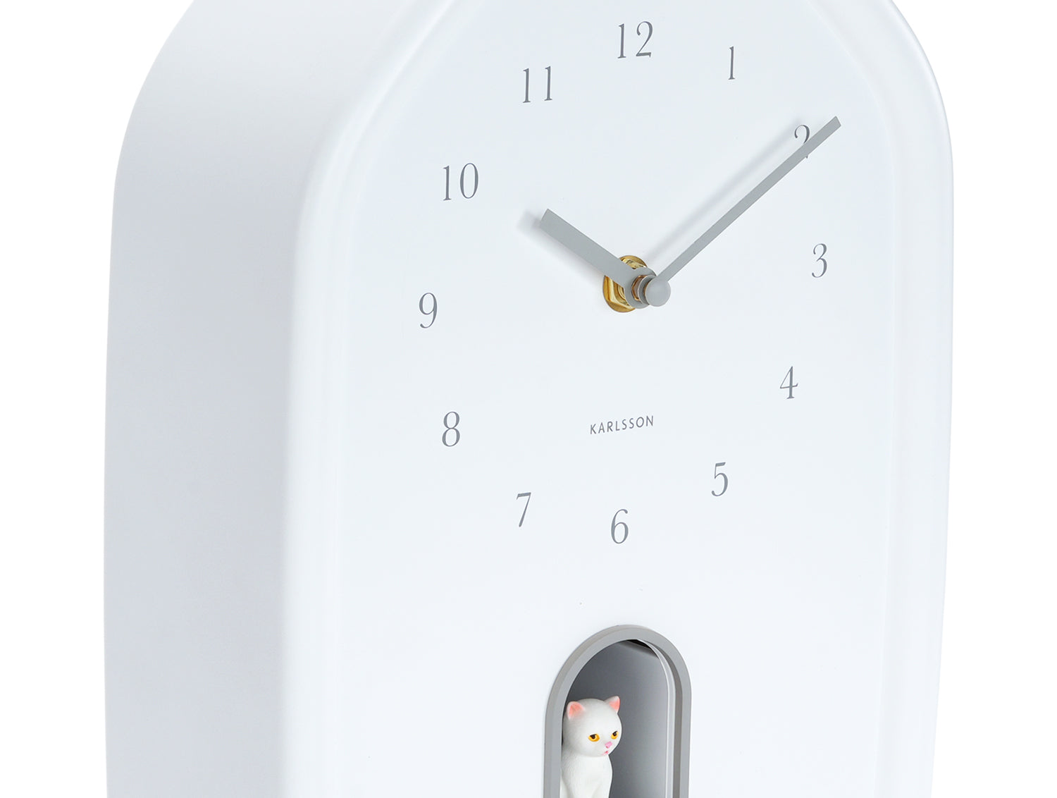 De Modern Kitty wandklok van Karlsson combineert eenvoud met een speels detail. Elk uur verschijnt er een schattig katje dat zacht miauwt. Het huisvormige design en de matte kleuren geven de klok een warme, moderne uitstraling. Perfect voor kattenfans en liefhebbers van strak design met een knipoog.