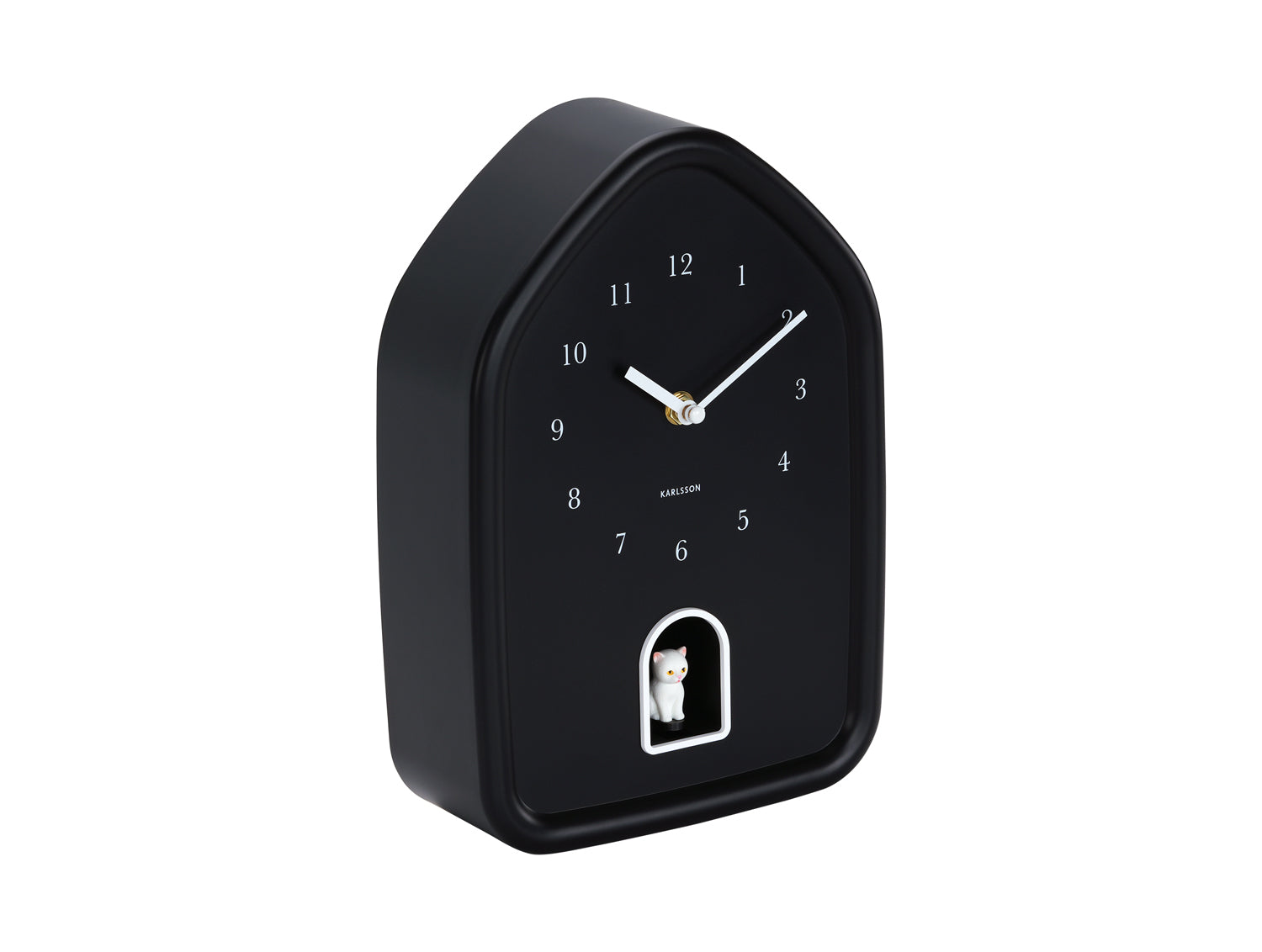De Modern Kitty wandklok van Karlsson combineert eenvoud met een speels detail. Elk uur verschijnt er een schattig katje dat zacht miauwt. Het huisvormige design en de matte kleuren geven de klok een warme, moderne uitstraling. Perfect voor kattenfans en liefhebbers van strak design met een knipoog.