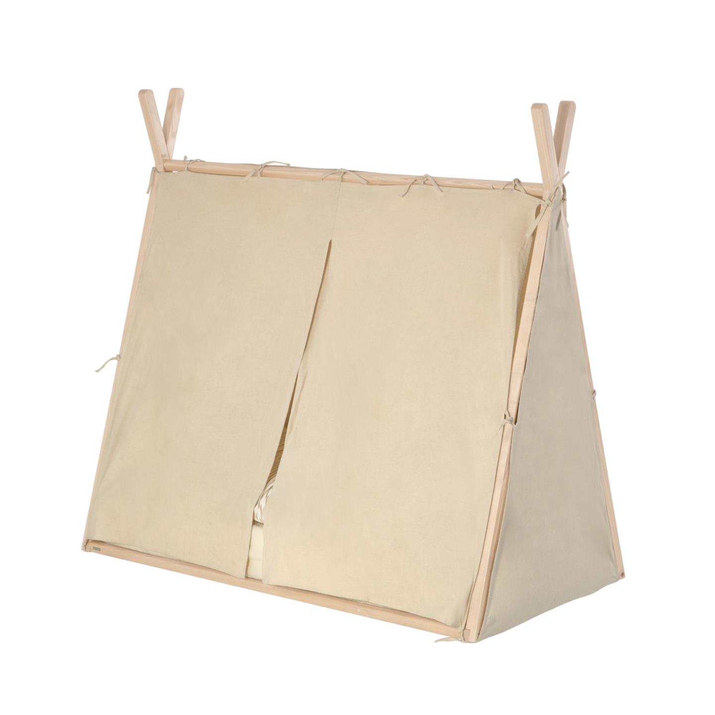 Perfect voor de kinder pyjamafeestjes. Met dit tentzeil van 100% katoen verandert hun tipibed in een tent waarin ze kunnen spelen en hun fantasie de vrije loop kunnen laten. Je kunt kiezen uit verschillende afmetingen die bij het matras passen en ze kunnen allemaal in de wasmachine.