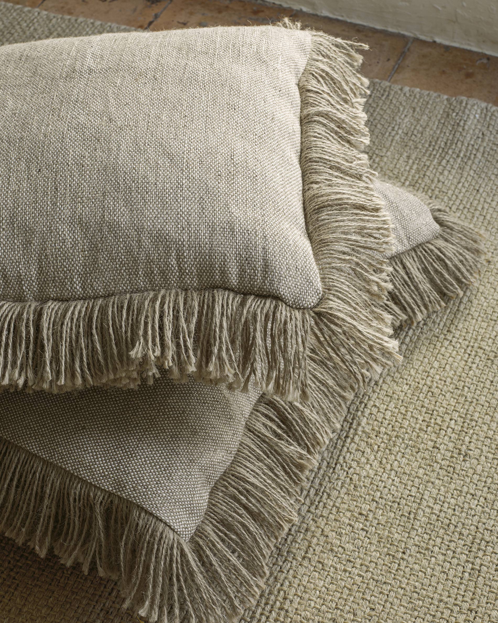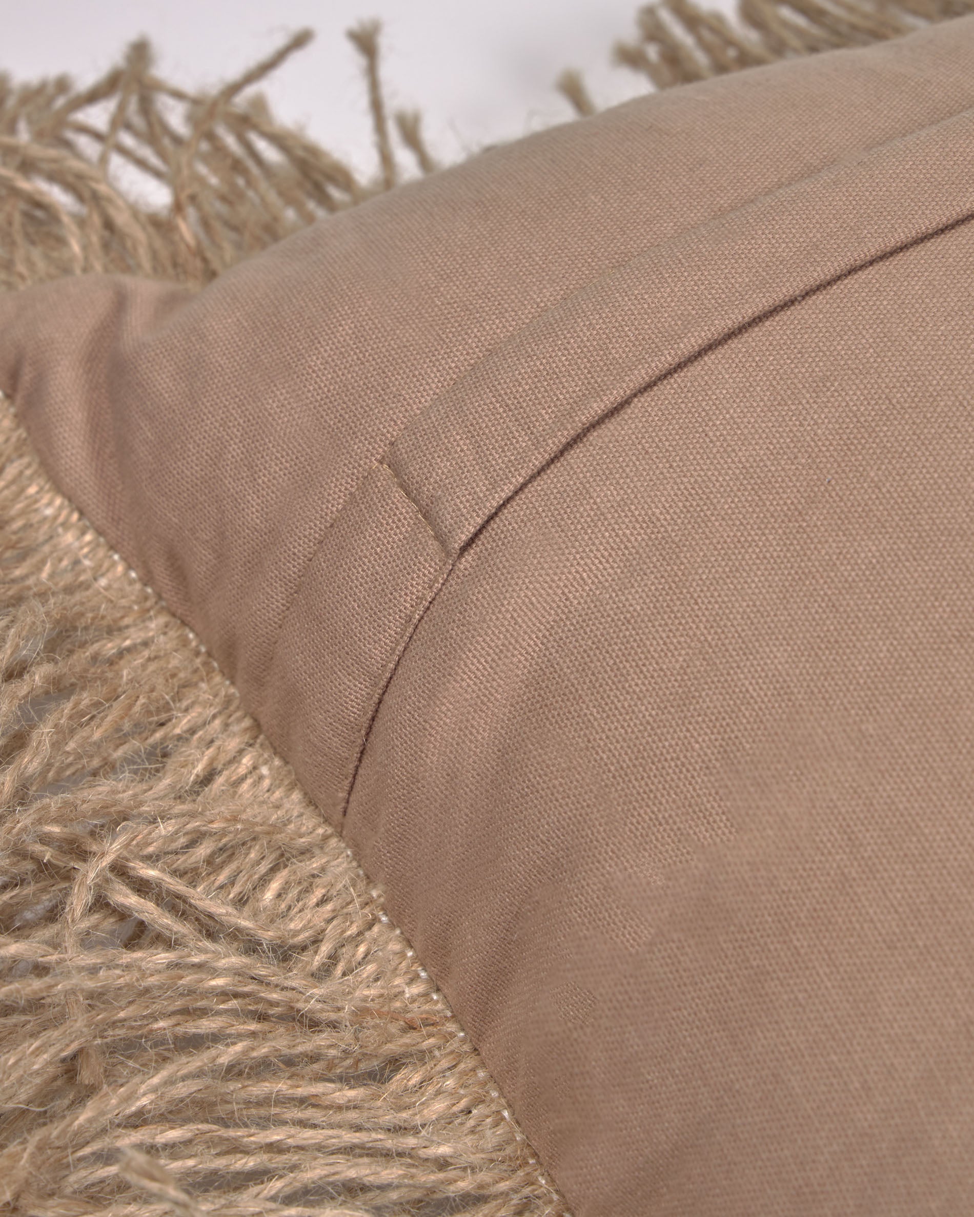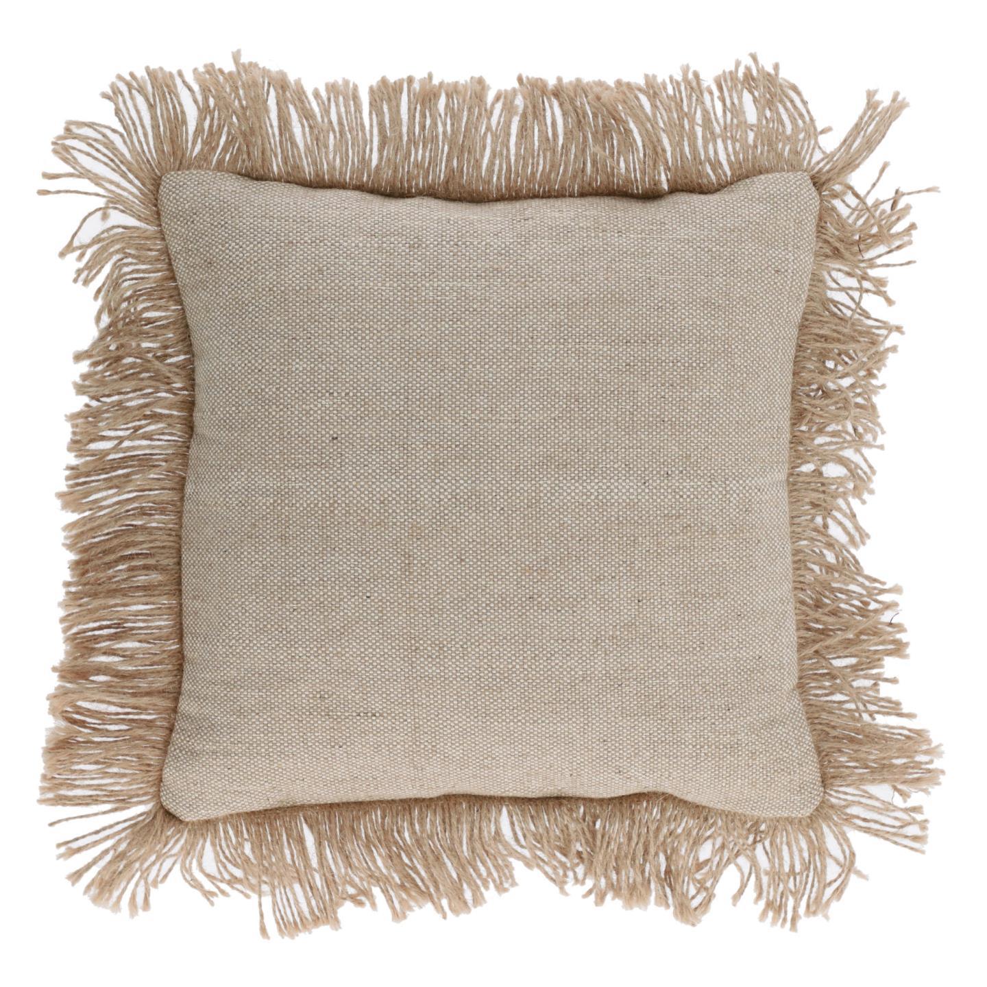 - Beige kussenhoes van katoen met juten franjes 45 x 45 cm.