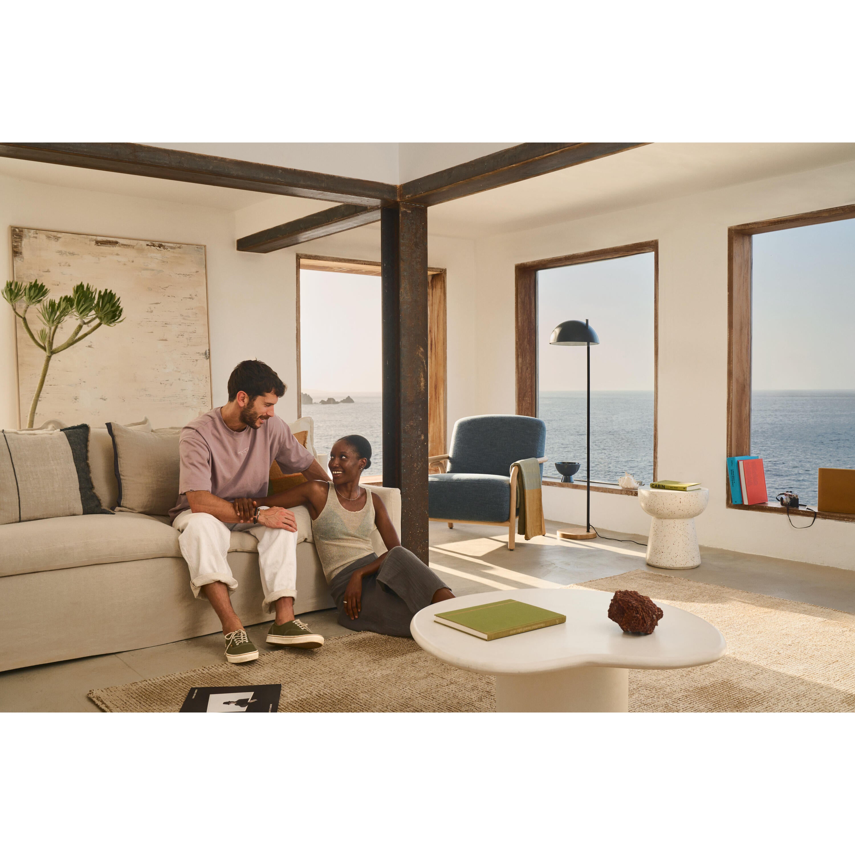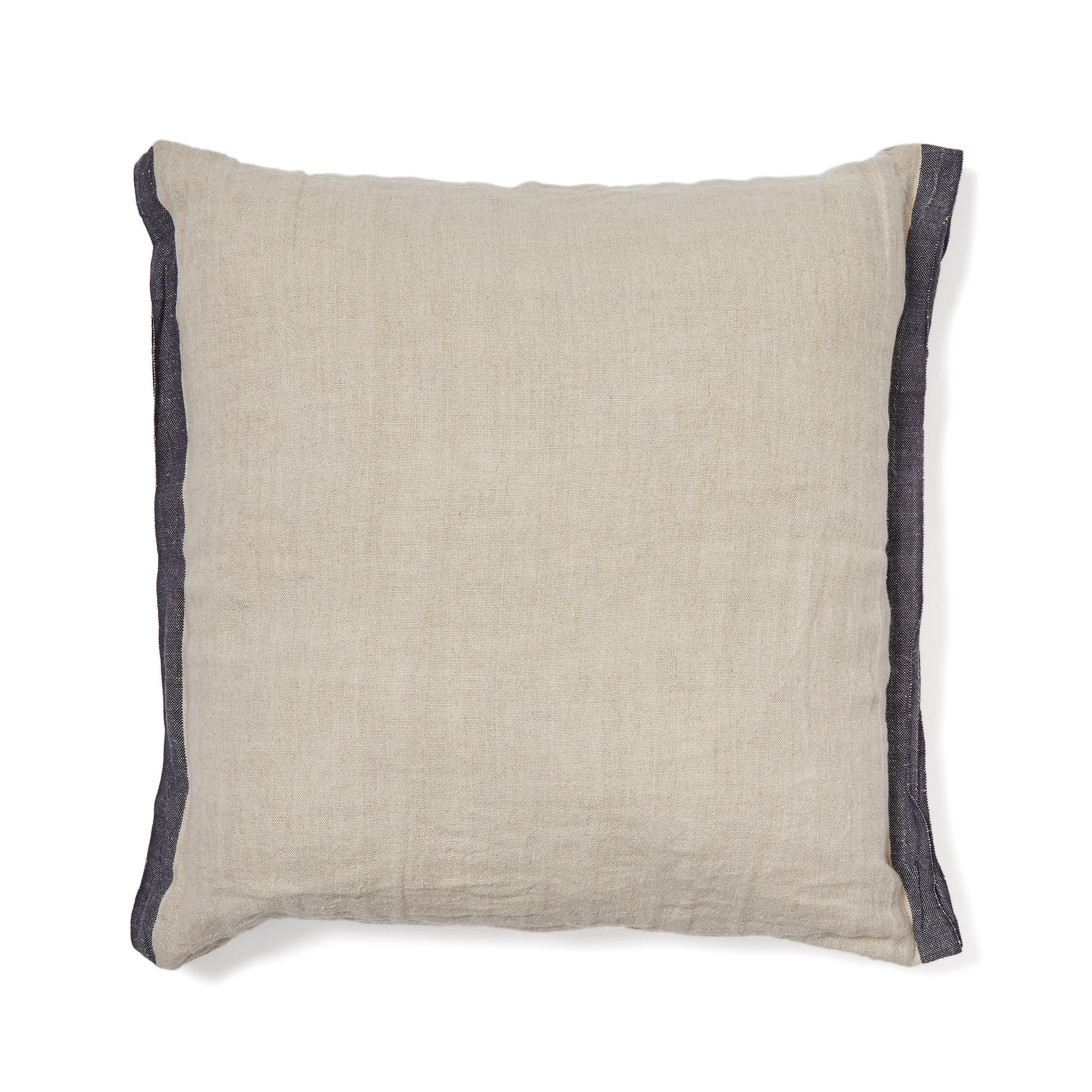 Kave Home - Beige kussenhoes Suerta van 100% linnen met blauwe