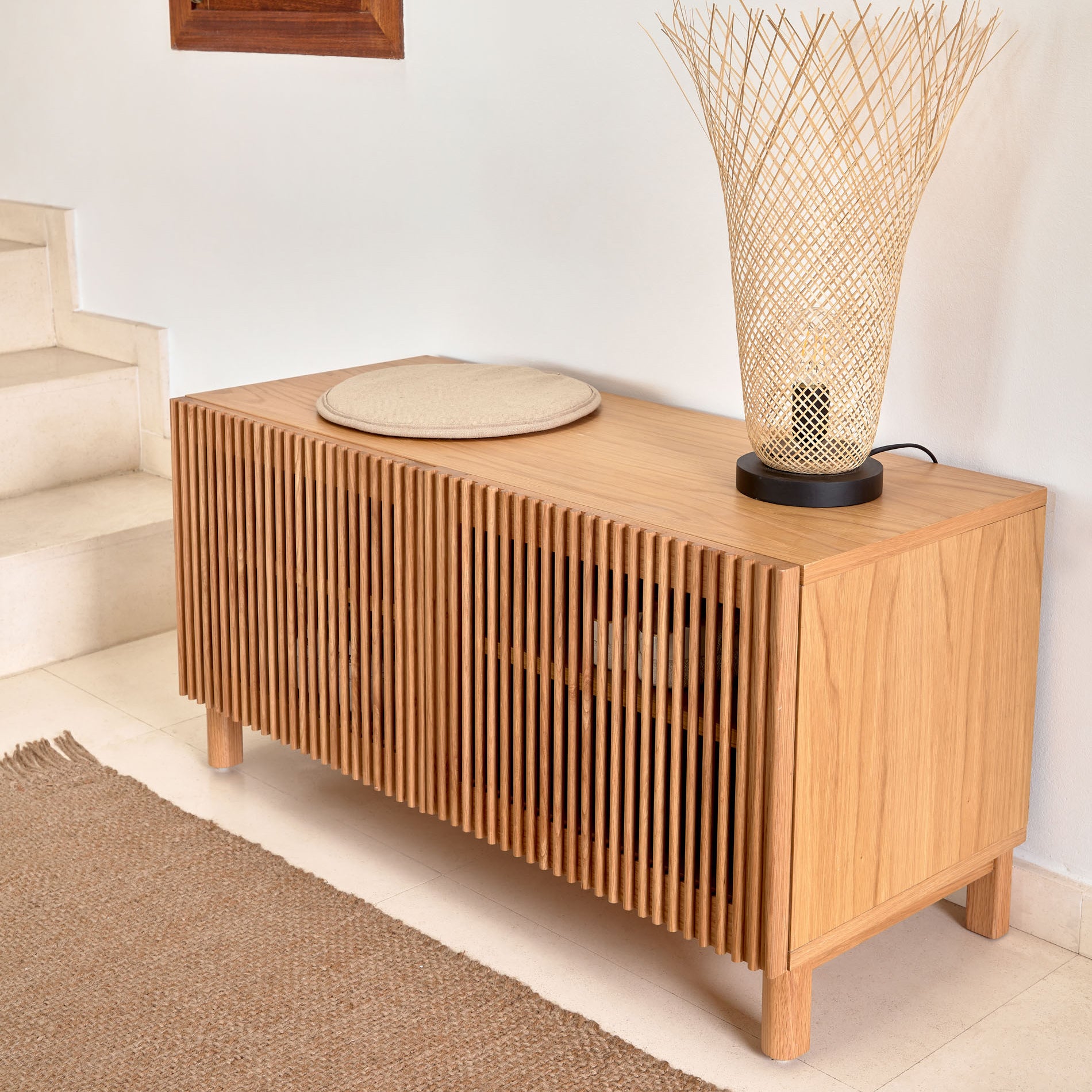 - Het teakhout en de texturen zorgen voor een bijzonder design
