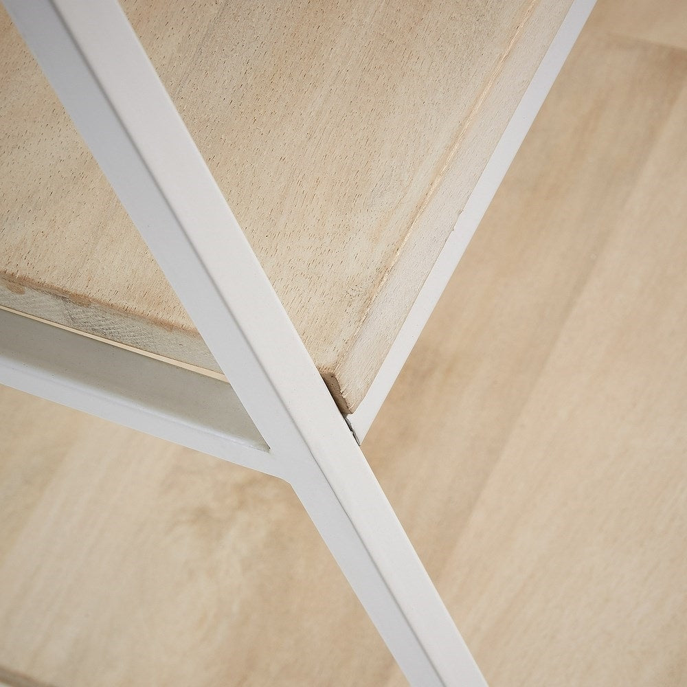 - De kast is gemaakt van wit metaal in combinatie met mangohout.
