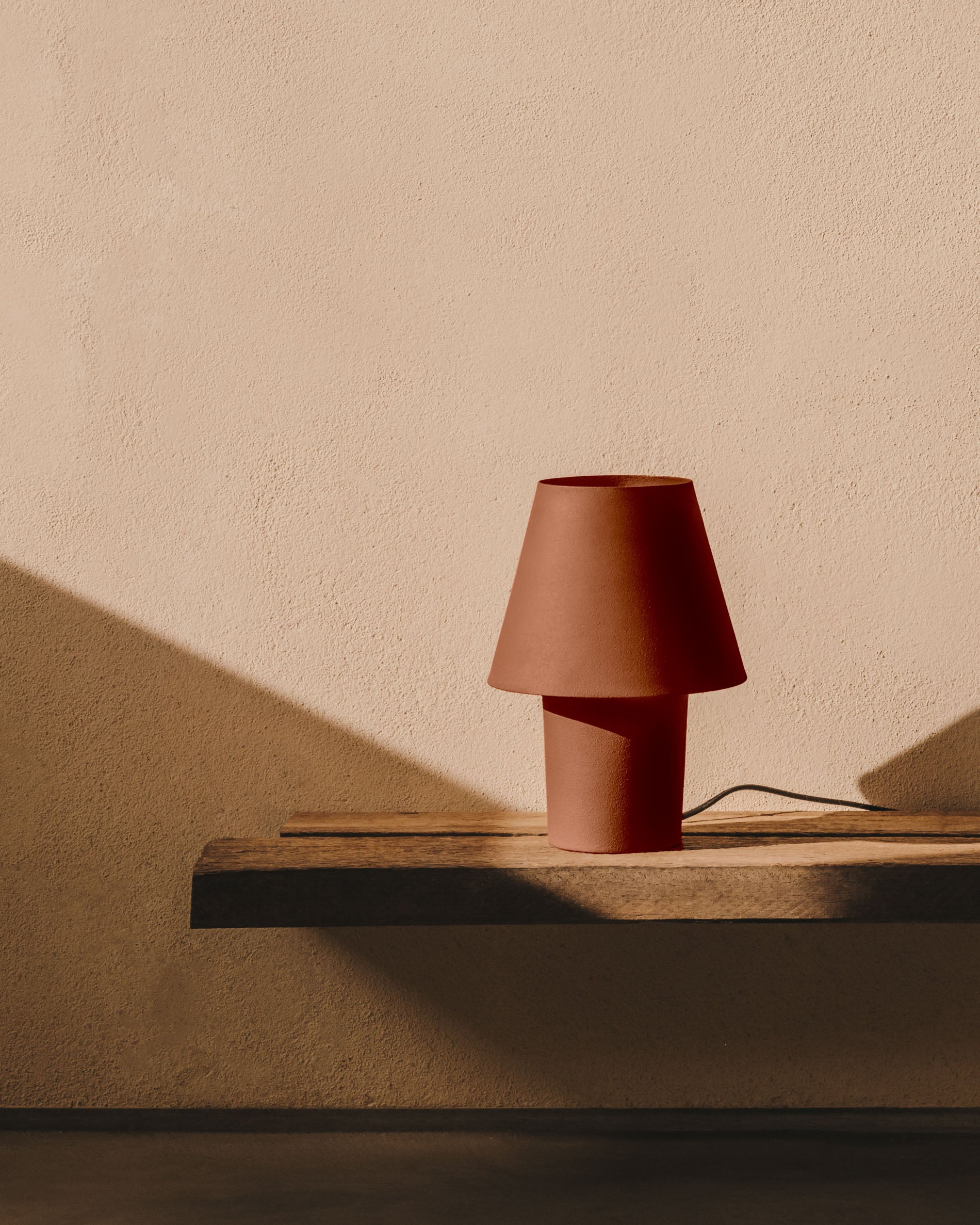 - Tafellamp van metaal met een finish van gestructureerde terracottaverf.