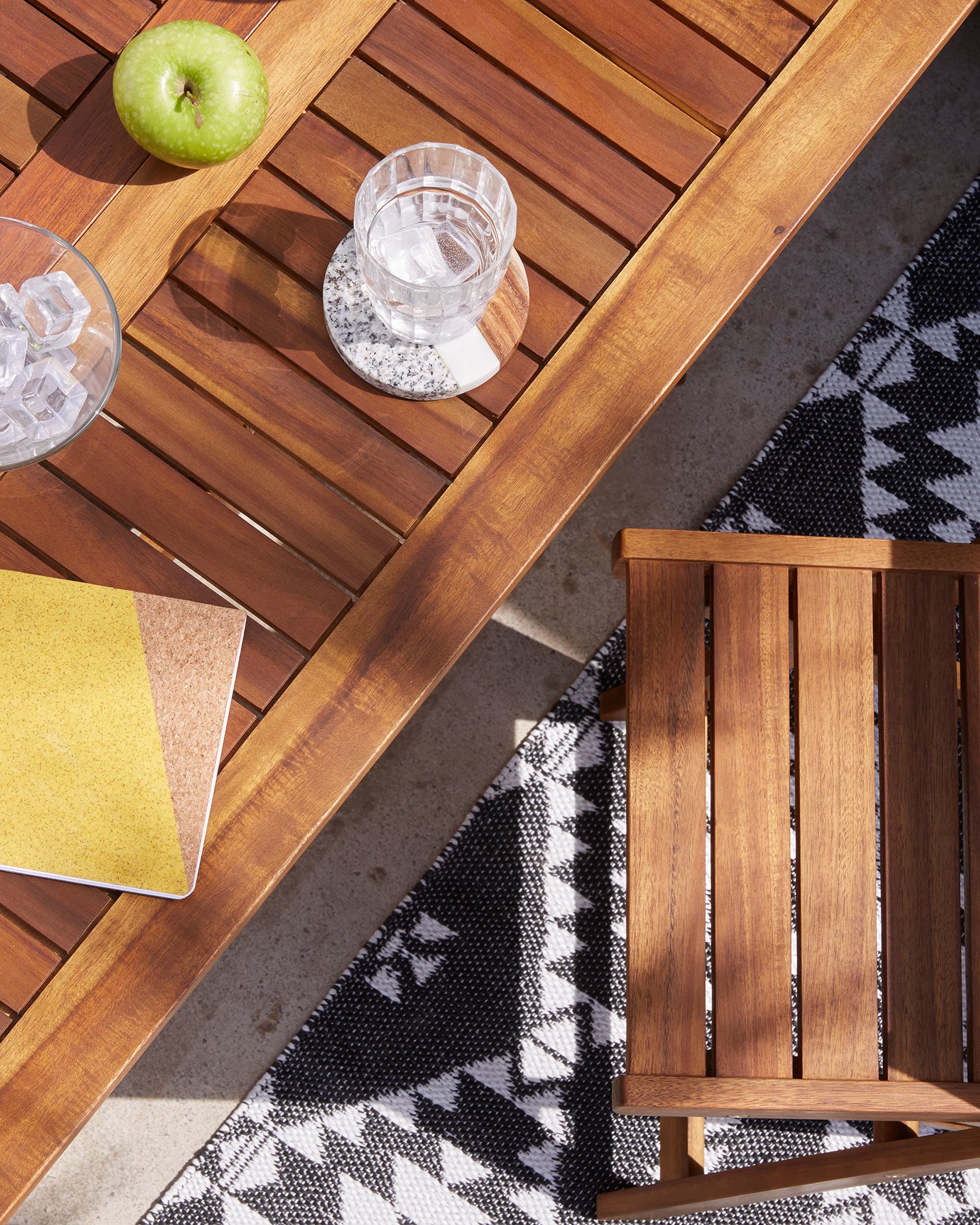 Set van 4 ronde onderzetters Ø 1,3 cm van wit marmer met grijs terrazzo en mangohout.
