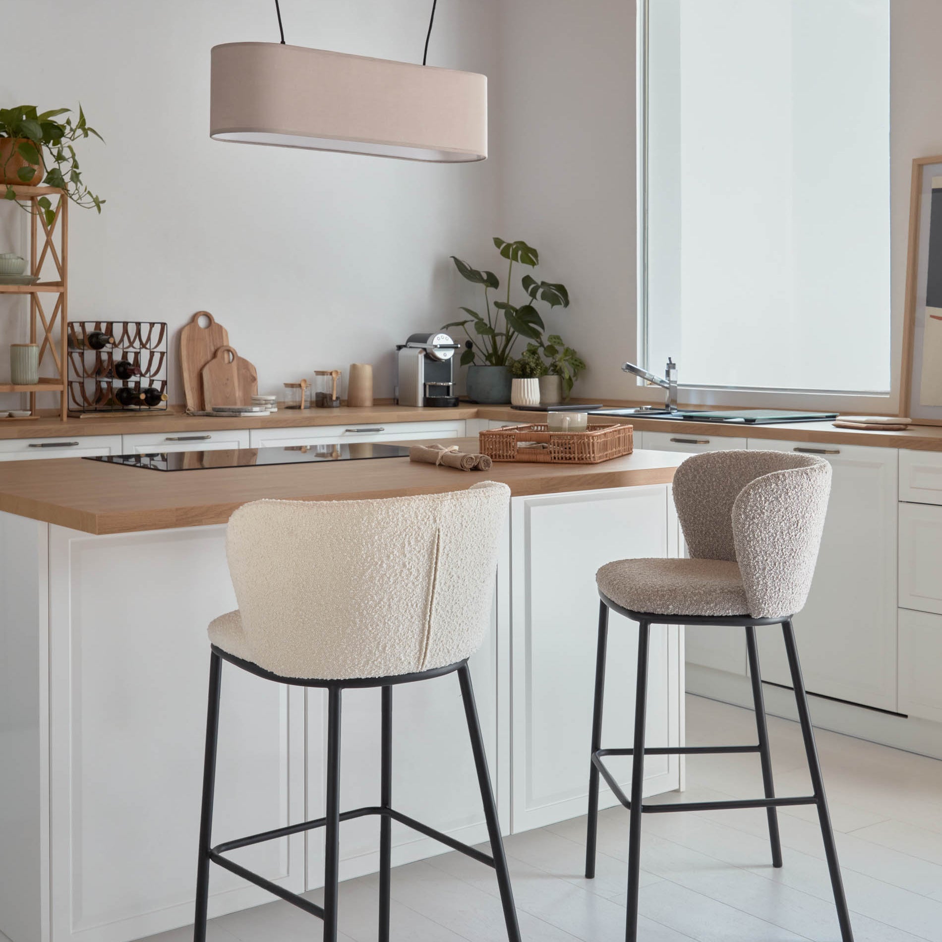 Kave Home Ciselia Barkruk - H 75 cm - Wit / Zwart