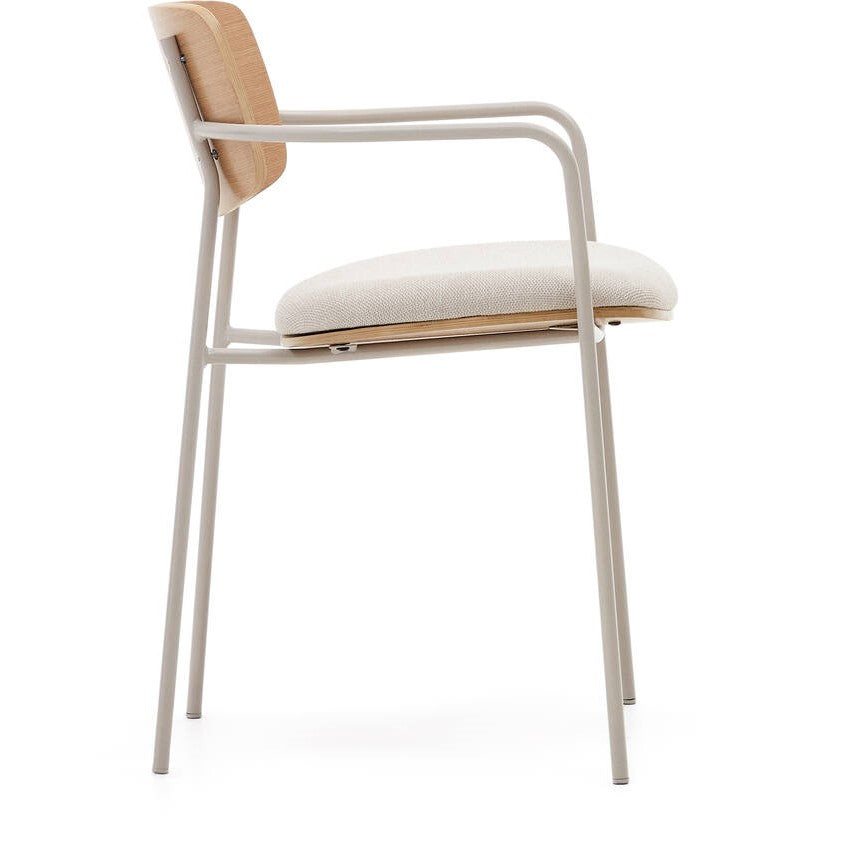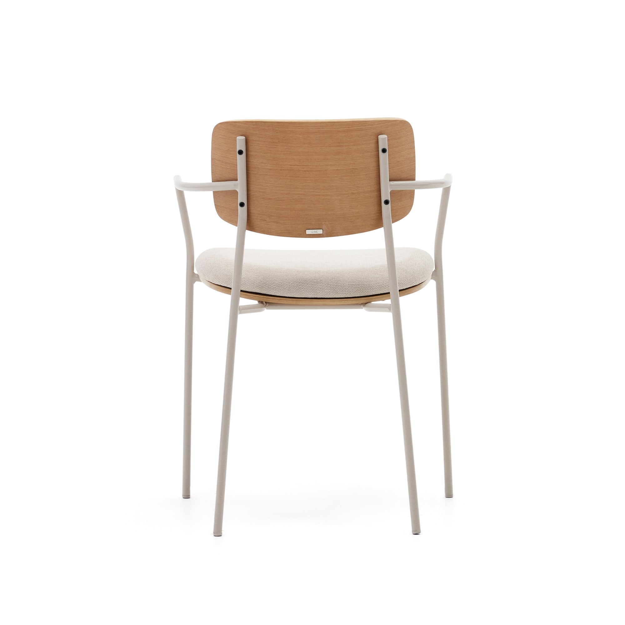 - Zitting bekleed met beige chenille en rugleuning en onderstel gemaakt van eikenfineer met natuurlijke afwerking.