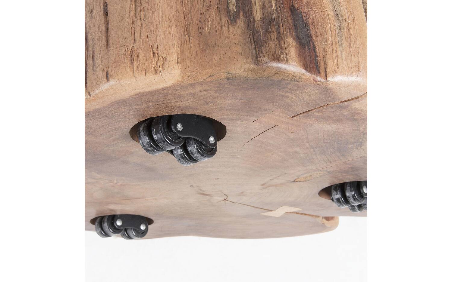 Bijzettafel met wieltjes, met blad in massief natuurlijk acaciahout en metalen poten.
