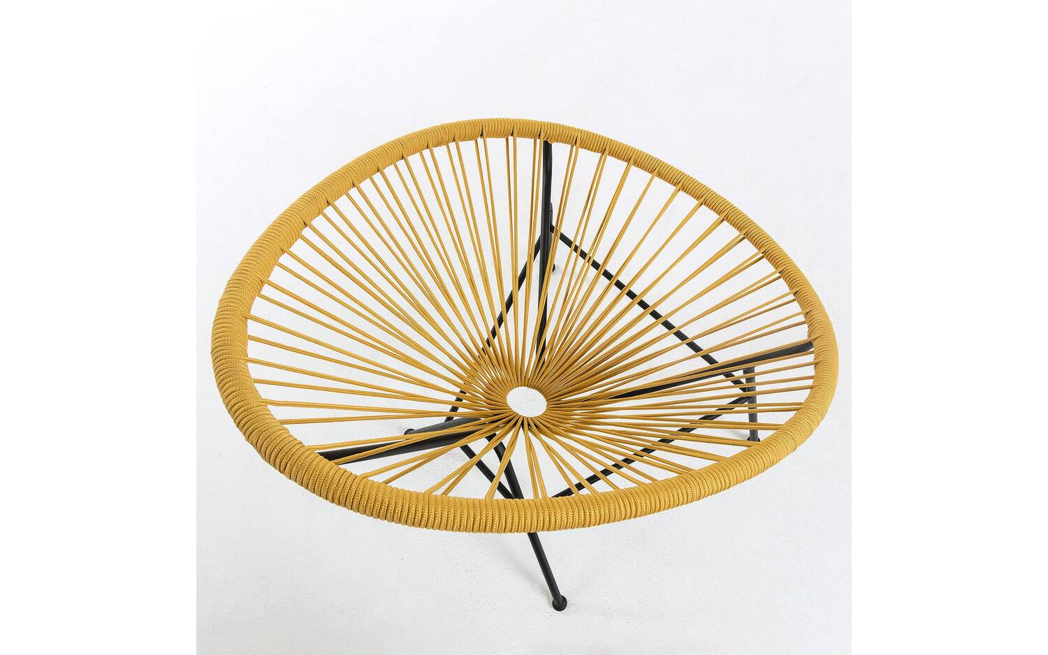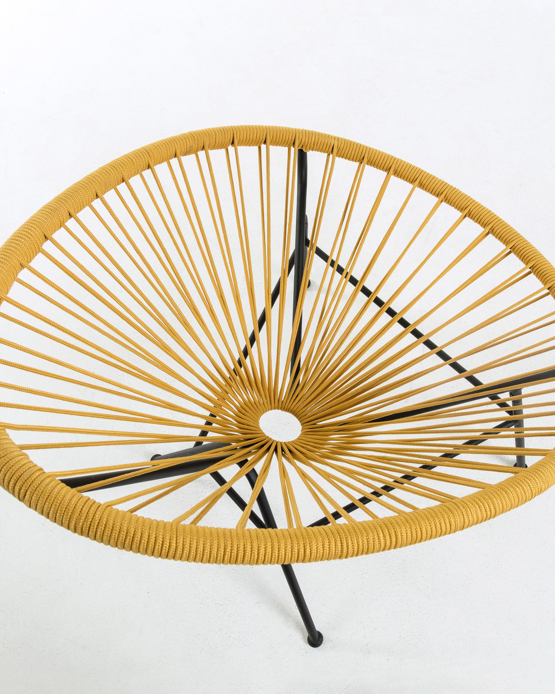 De touwen van de fauteuil Samantha, in dit geval mosterd, zijn met de hand gevlochten en speciaal behandeld zodat ze bestand zijn tegen de zon. Bovendien rust hij op een gegalvaniseerde stalen structuur, waardoor hij bestendig en stabiel is. Welcome home.