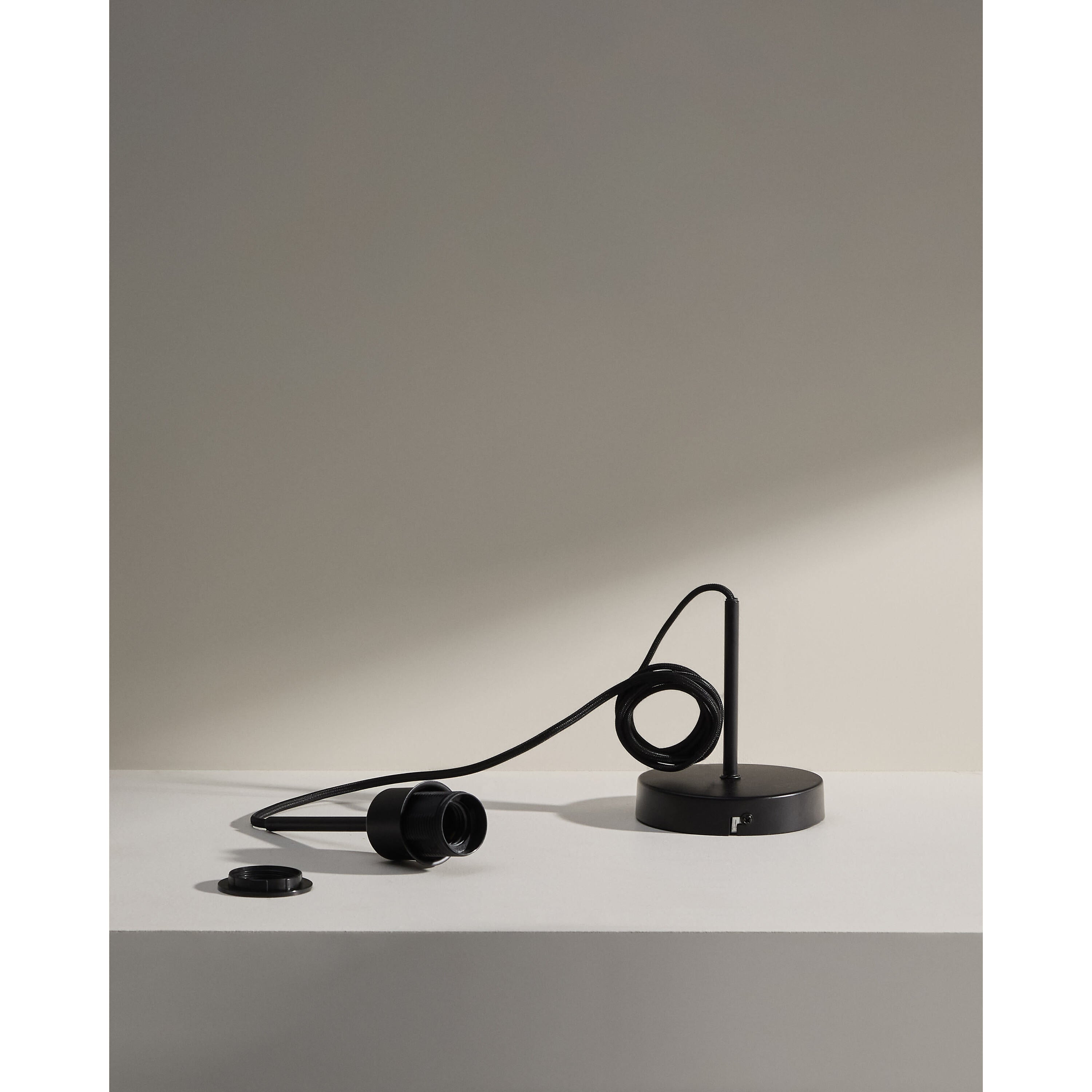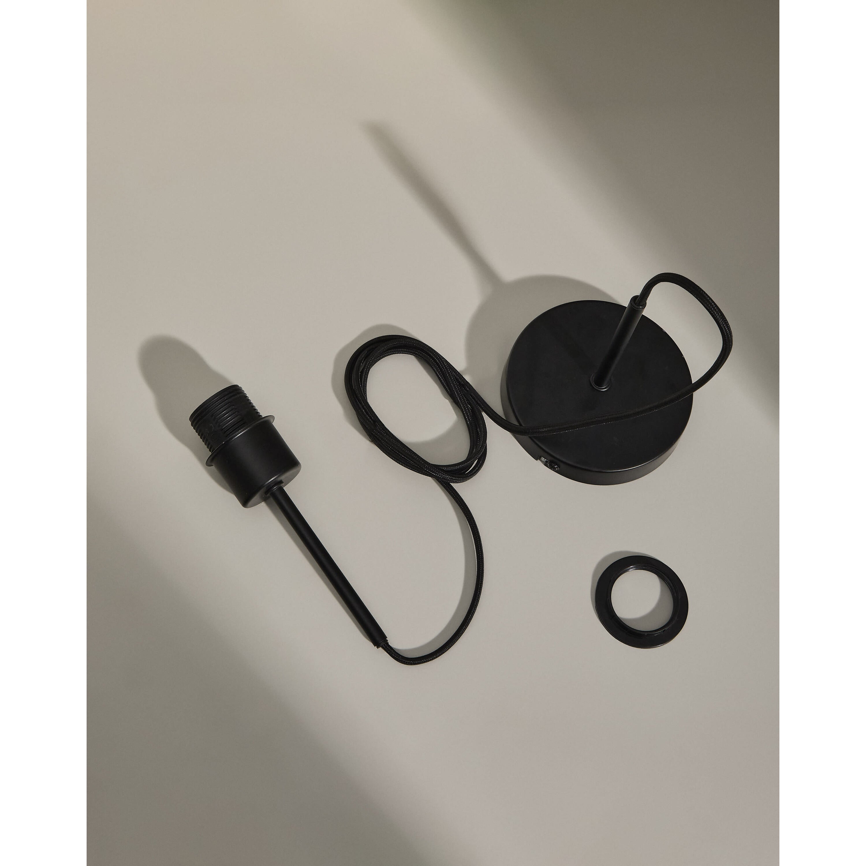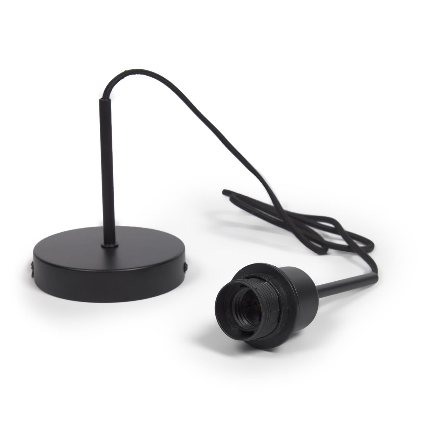 - Plafondlamphouder van metaal met zwarte afwerking. Zwarte plastic kabel 1,50 m.