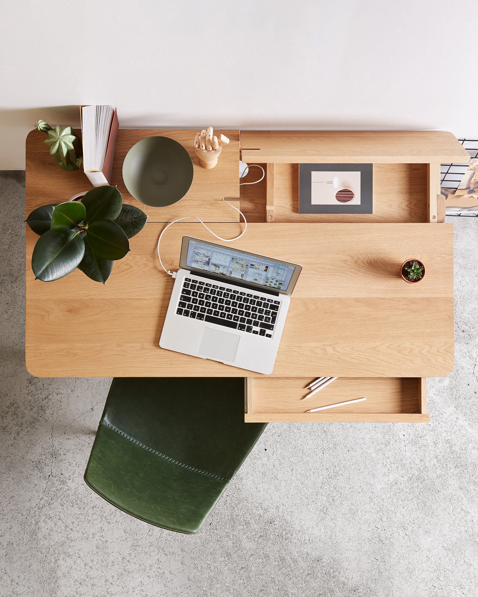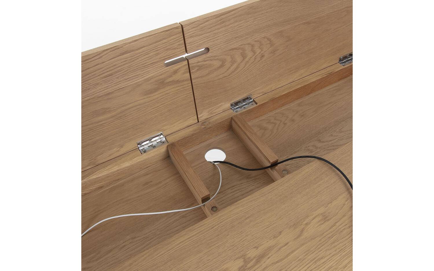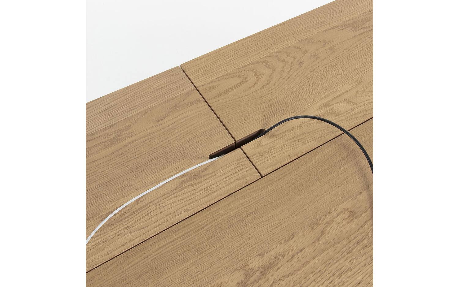 - Tafel met twee lades en een binnenvak op hetzelfde blad om de kabels te plaatsen en te verbergen.