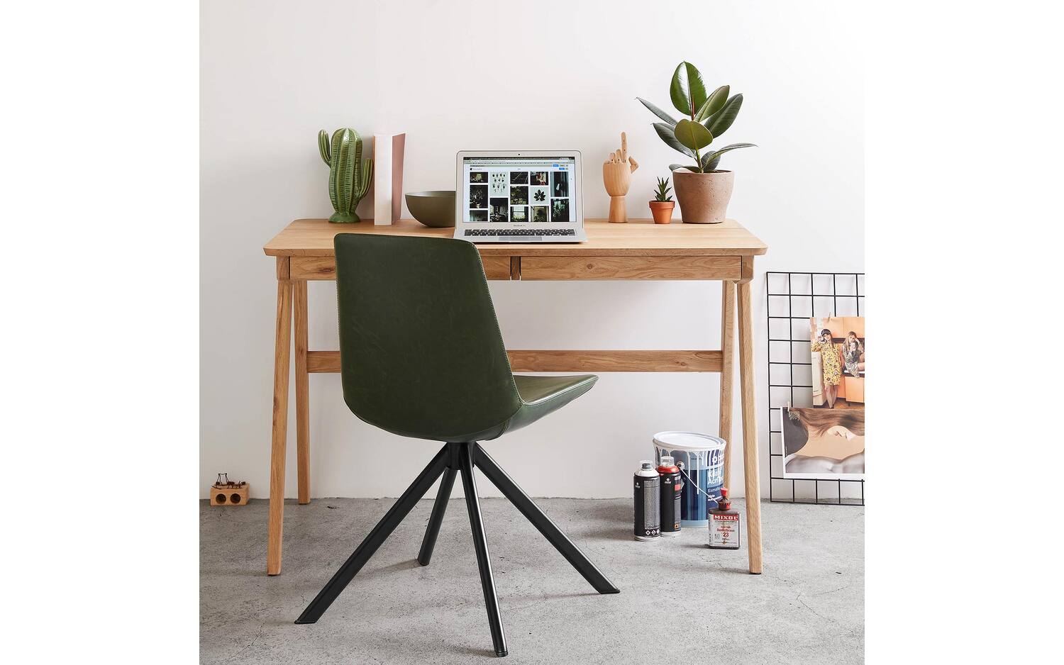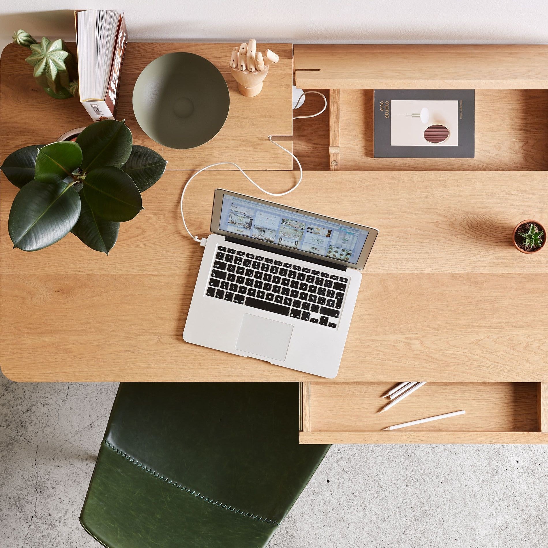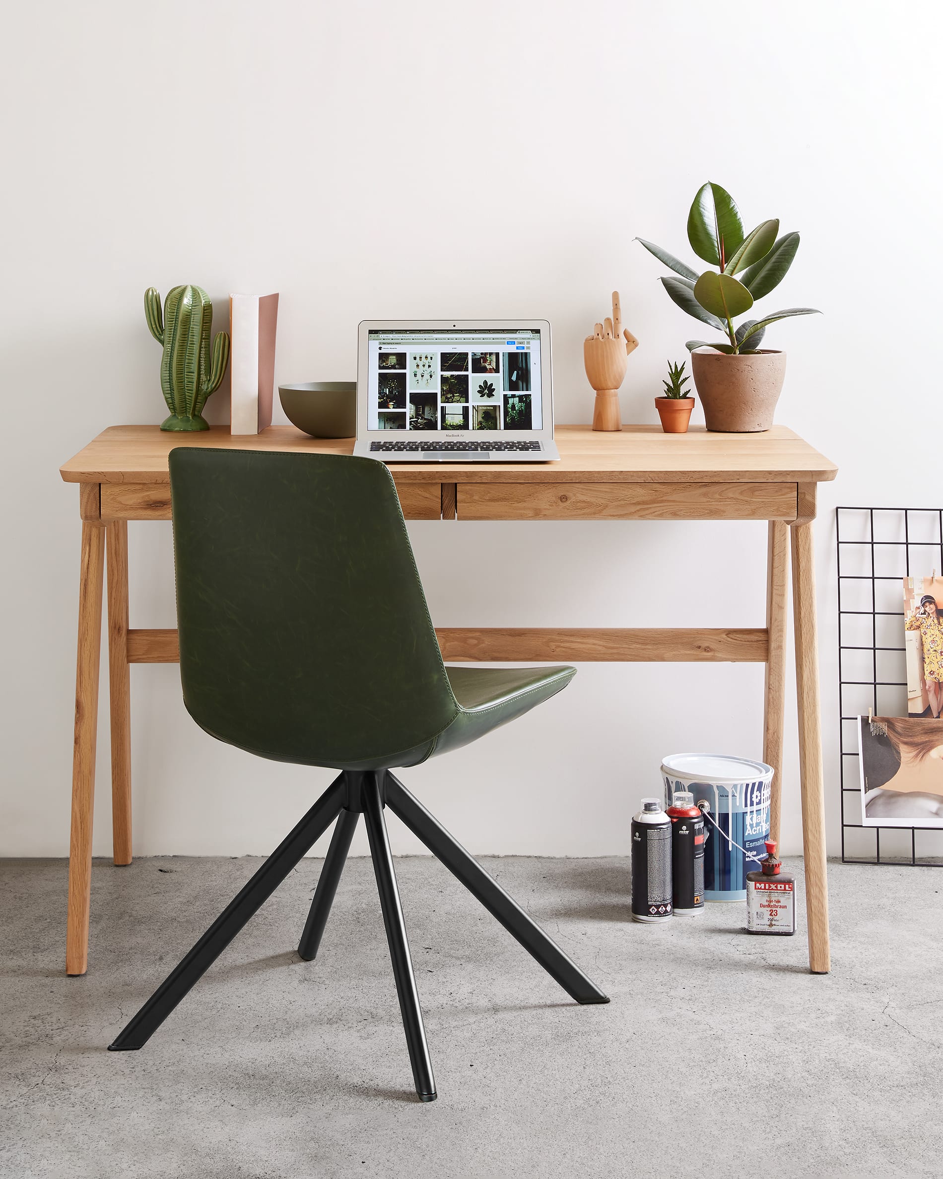 - Tafel met twee lades en een binnenvak op hetzelfde blad om de kabels te plaatsen en te verbergen.