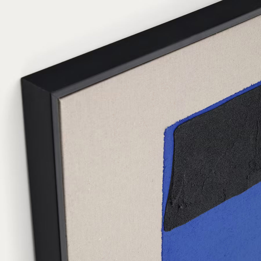 - Gelaagde techniek: geverfd linnen met diepzwarte accenten