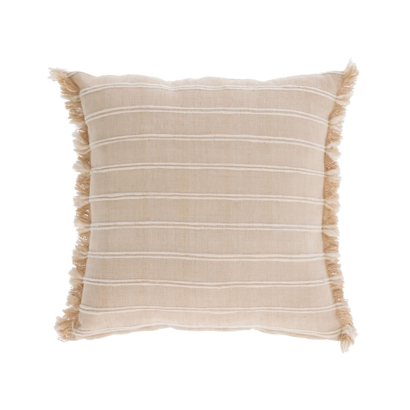 Wil je je interieur een nieuwe look geven? Dat is super eenvoudig... en comfortabel! Met onze 100% katoenen kussenhoes Sweeney met beige en witte strepen ziet je fauteuil of bank er meteen authentiek uit en zit je ook nog eens heerlijk.