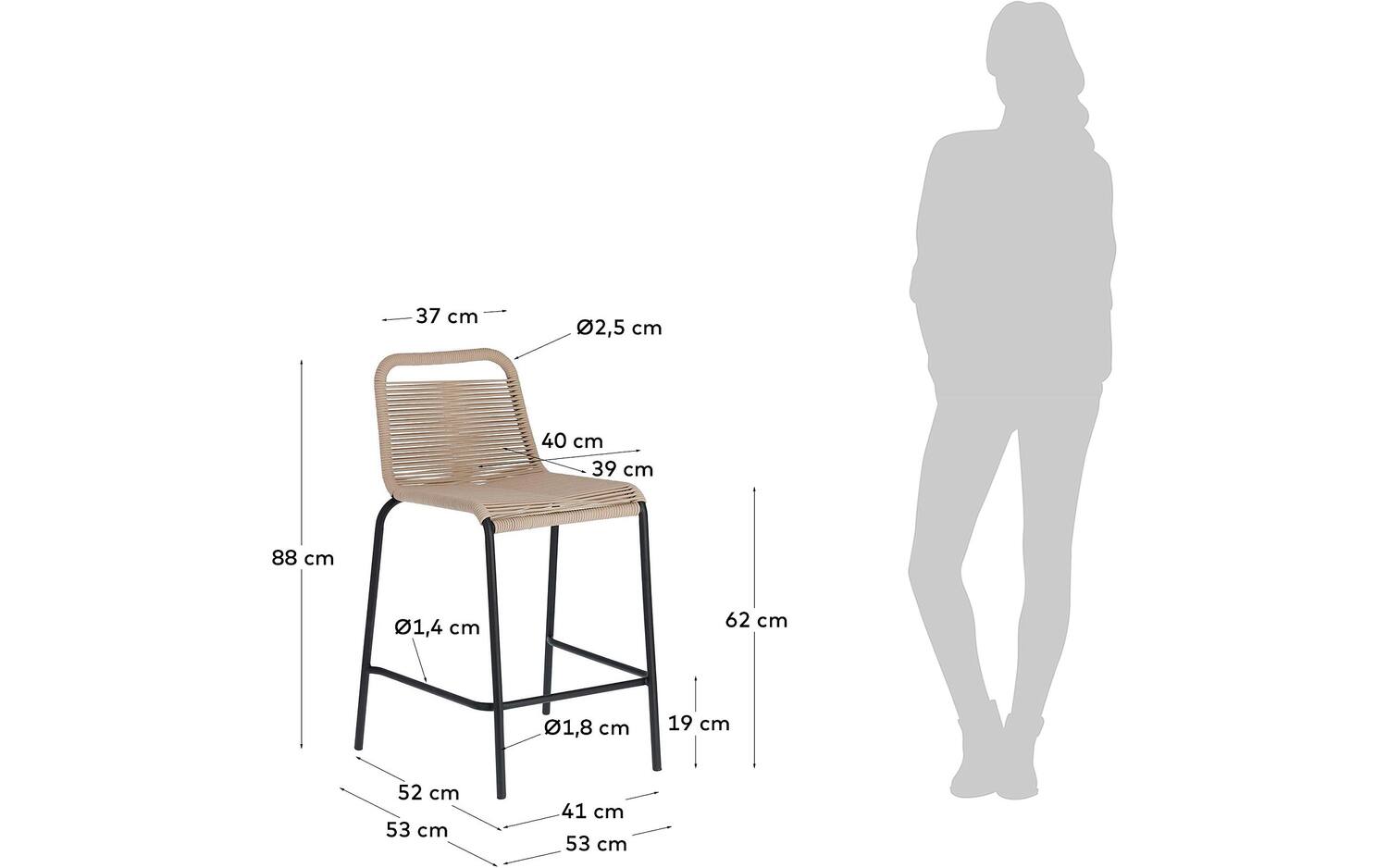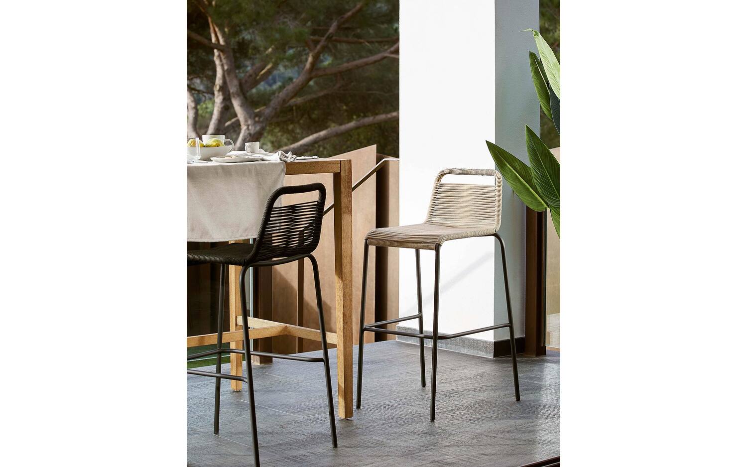 Kruk Lambton in het bruin 88 cm hoog. De zitting is gemaakt van met de hand gevlochten polyestertouw en UV-stralenbestendig, dus je kunt het ook buiten in zonnige dagen gebruiken. Bovendien is de opbouw van gegalvaniseerd staal, corrosie- en roestvri j en duurzamer dan gewoon staal. Nu kan je heerlijke drankjes delen op het balkon want deze krukken nemen, zelfs opgeborgen, heel weinig ruimte in. Je kunt ze opstapelen!