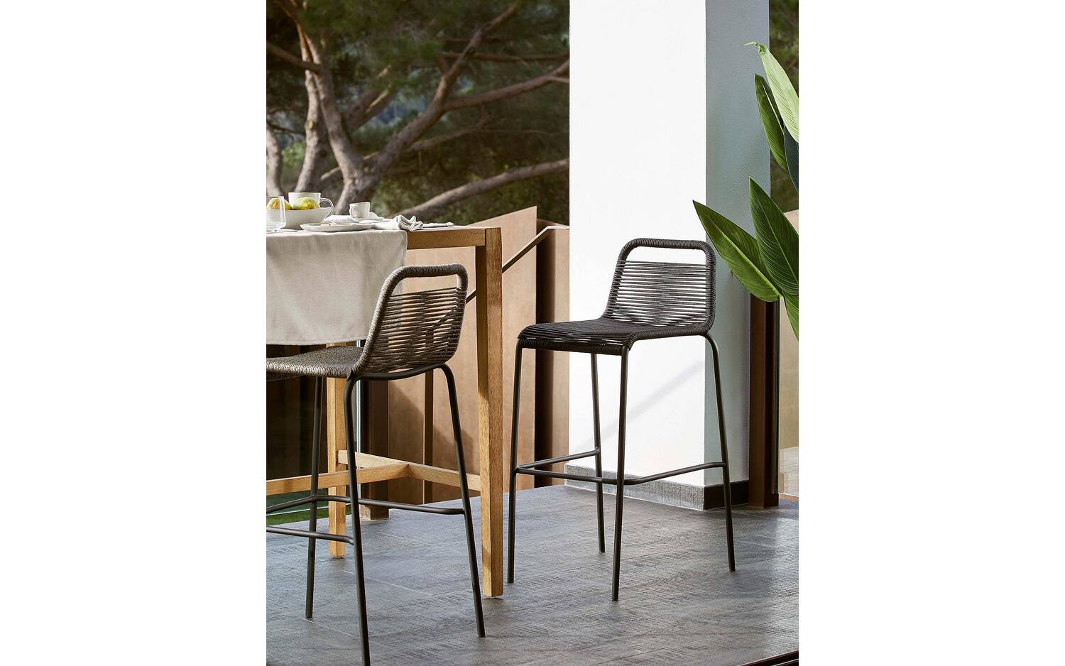 Kruk Lambton in het bruin 88 cm hoog. De zitting is gemaakt van met de hand gevlochten polyestertouw en UV-stralenbestendig, dus je kunt het ook buiten in zonnige dagen gebruiken. Bovendien is de opbouw van gegalvaniseerd staal, corrosie- en roestvri j en duurzamer dan gewoon staal. Nu kan je heerlijke drankjes delen op het balkon want deze krukken nemen, zelfs opgeborgen, heel weinig ruimte in. Je kunt ze opstapelen!