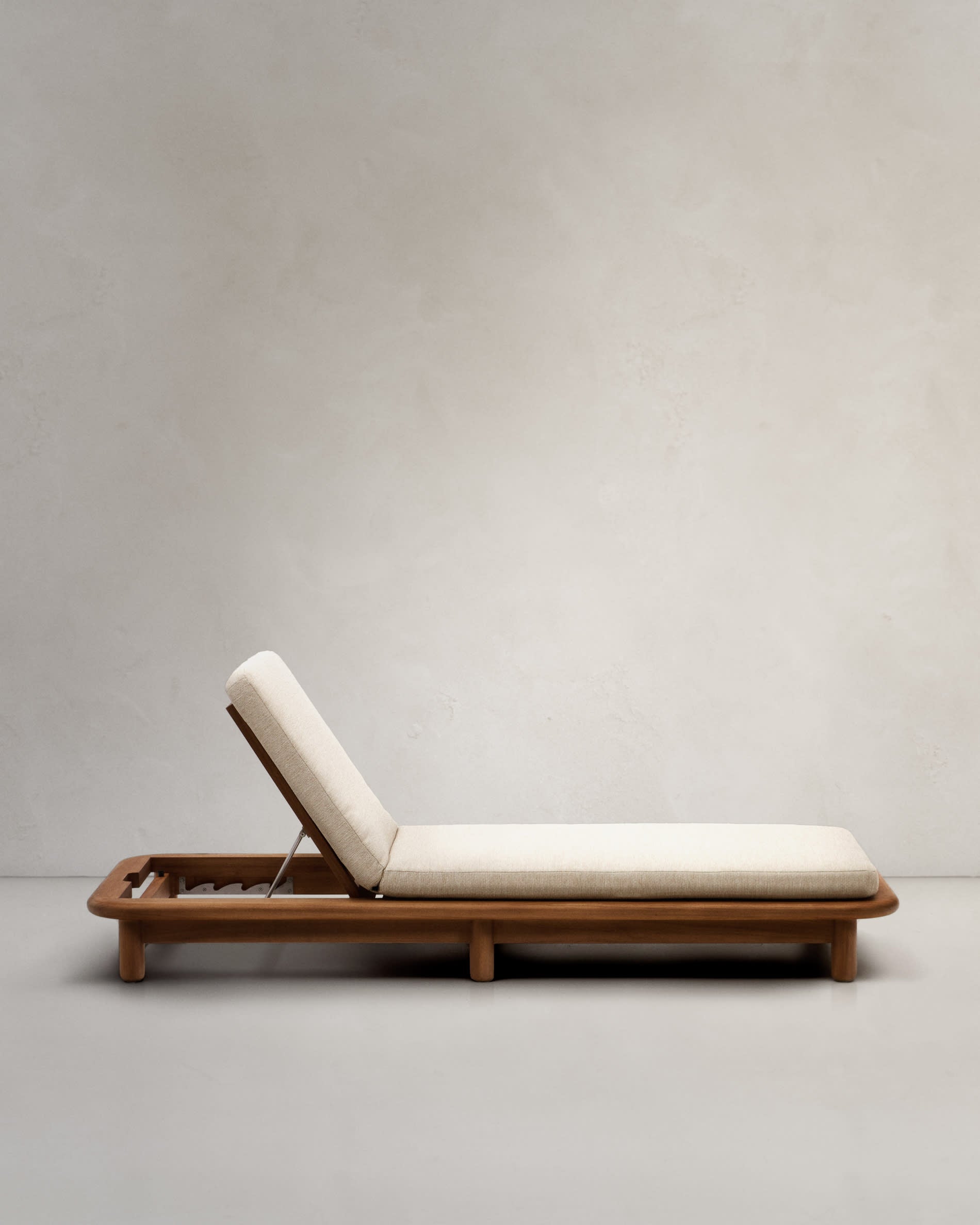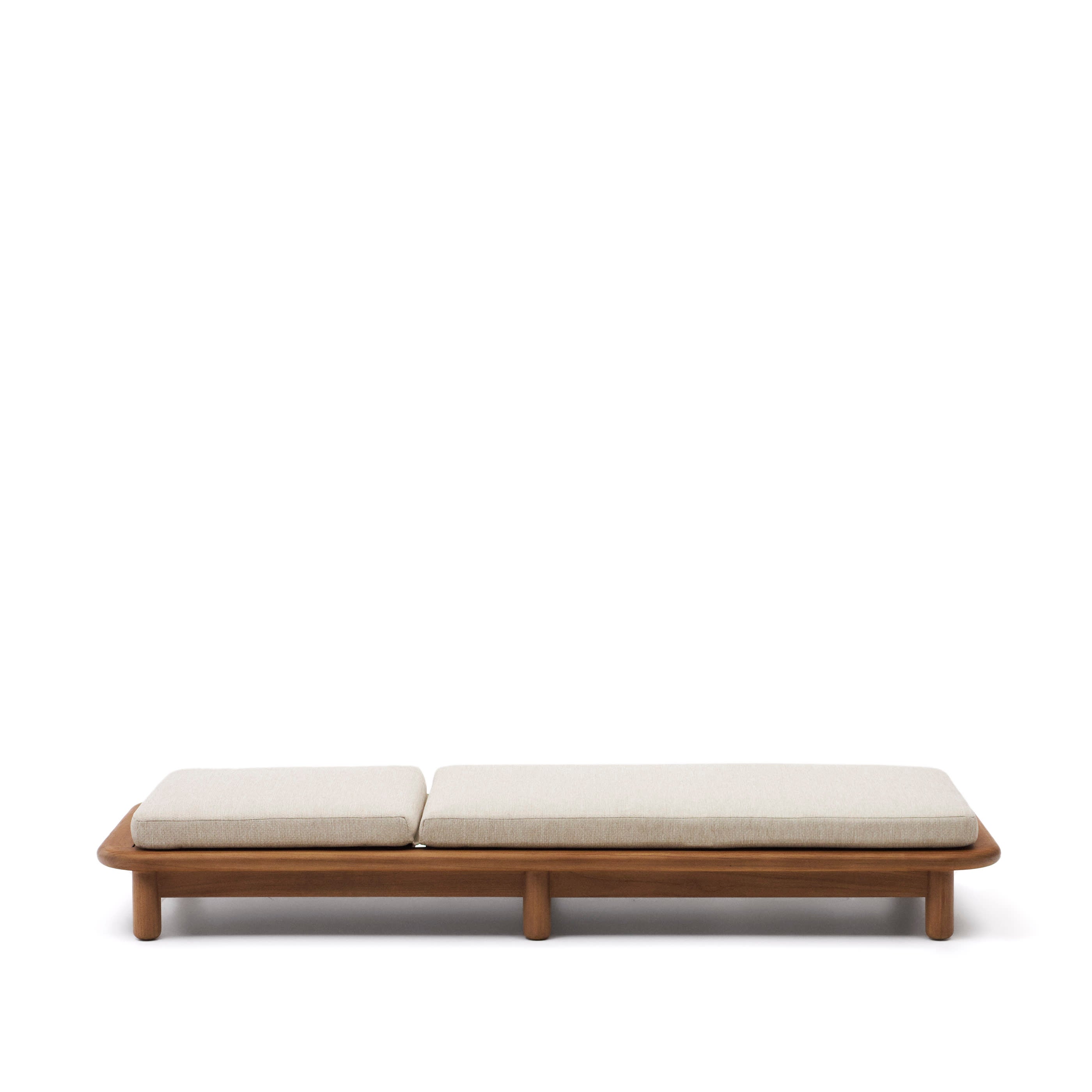 Turqueta is een exclusief ontwerp van Made Studio voor Kave Home. De eigentijdse geometrische vormen en uitgesproken horizontaliteit stralen buiten rust en comfort uit. Een collectie gemaakt van massief teakhout voor de ultieme ontspanning.
