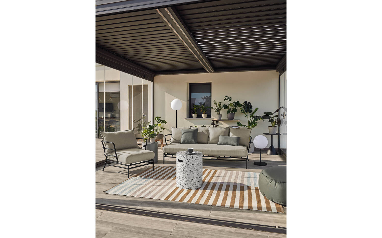 - Inclusief kussens met afneembare kussenhoezen. We raden aan om deze bij regen binnen te bewaren.