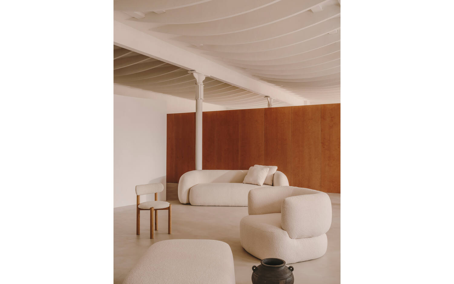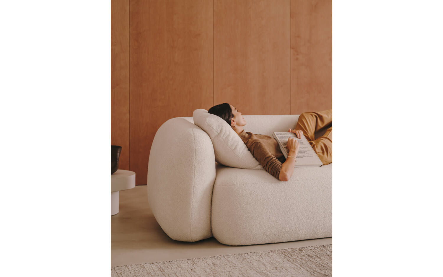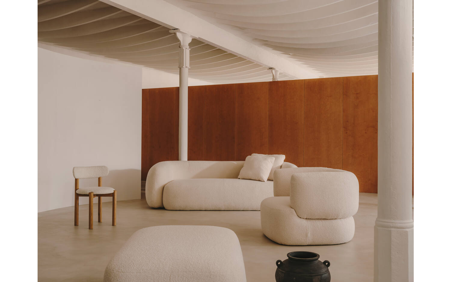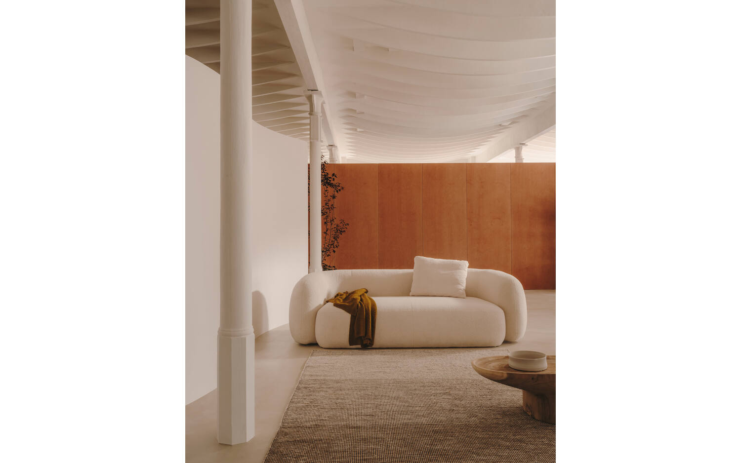 Het Kave Home-team heeft de Martina-collectie ontworpen, gemaakt voor ontspanning en met zorg voor de planeet. De gebogen vormen en de bekleding van 100% gerecycled polyester met een schapenvachteffect maken dit het perfecte meubelstuk voor je woonka mer.